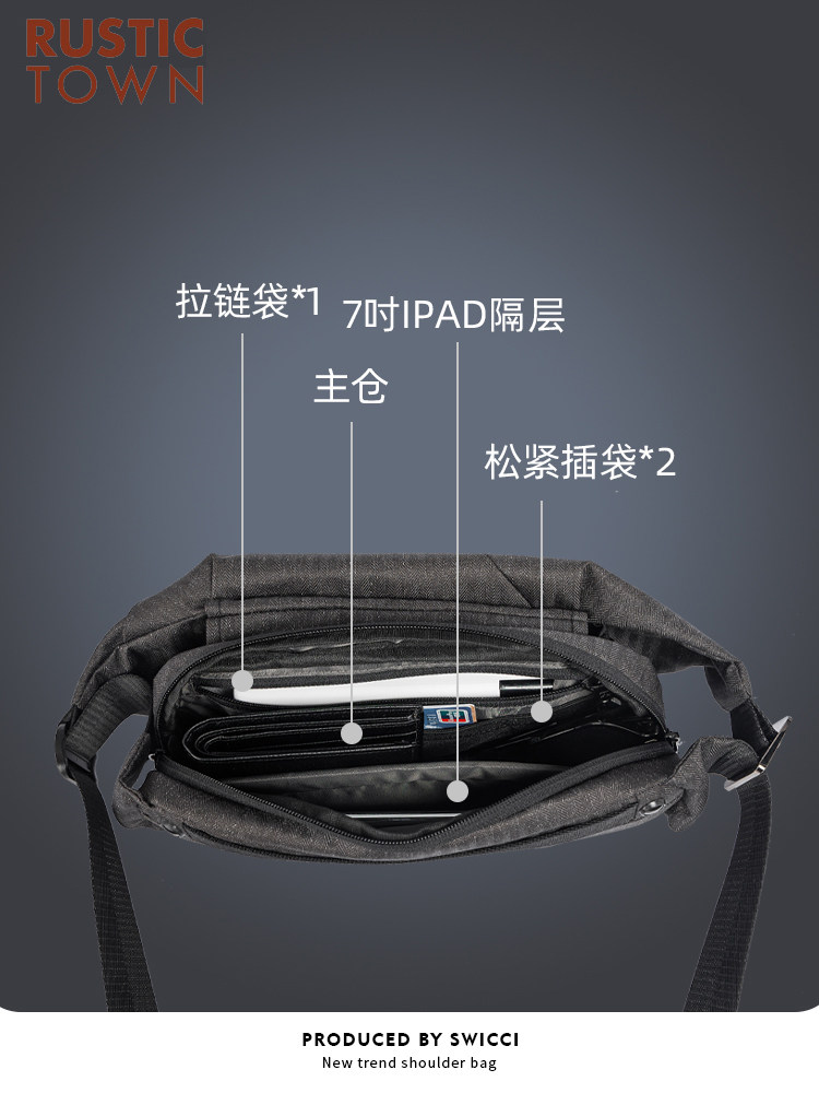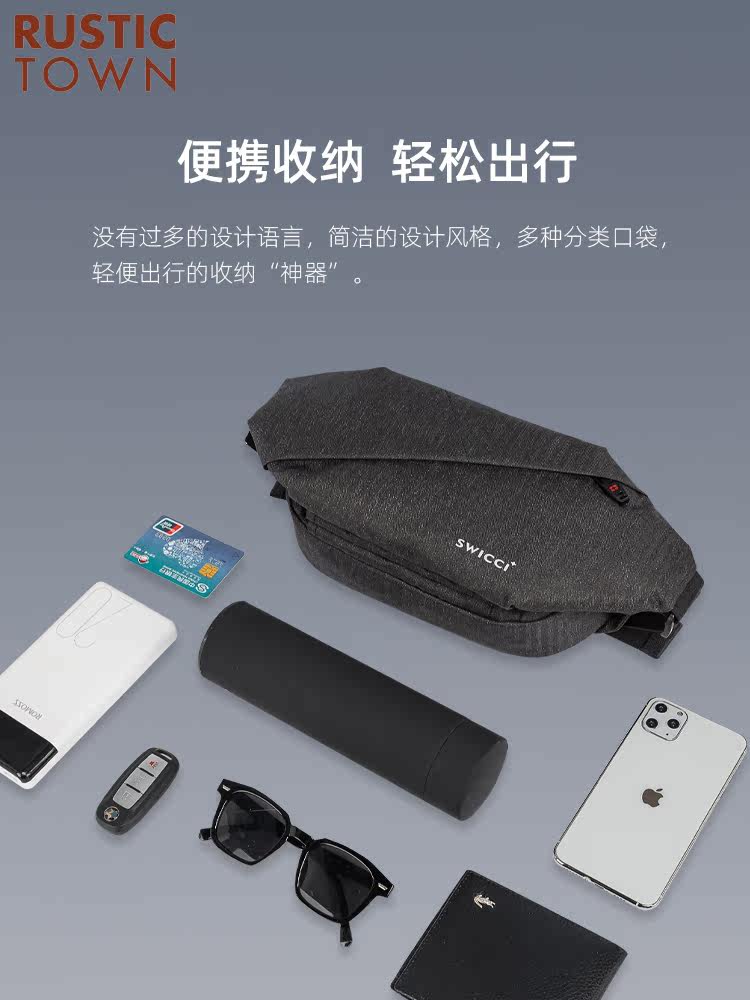 Rustic town chest bag men's sports waist bag functional bag multi-functional large-capacity casual shoulder messenger bag
