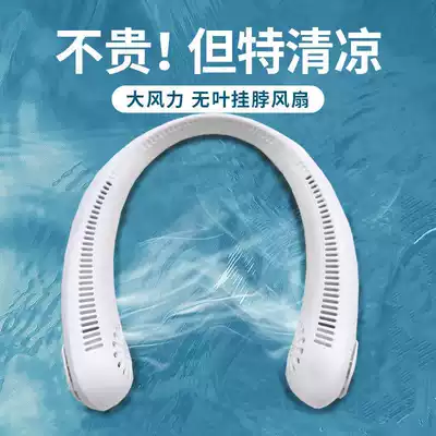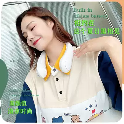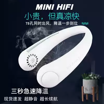 Hang neck fan plus headphones students outdoor sports hanging neck fan leafless silent USB charging office