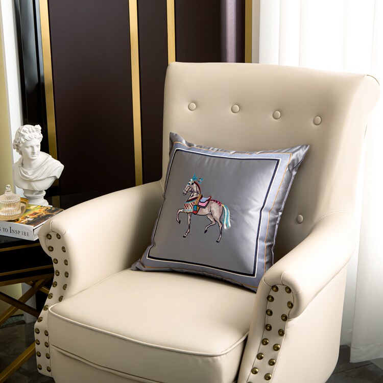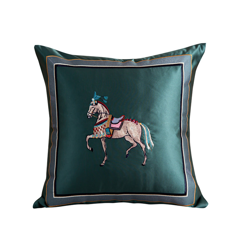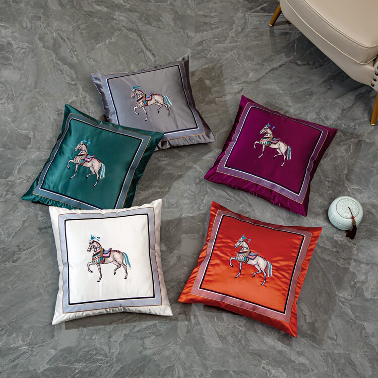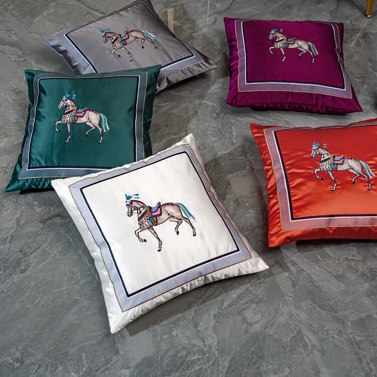American light lavish emulated silk Summer embroidered Embroidered horse with pillow-like plate Waist Pillow Cushion Real Leather Sofa Backrest