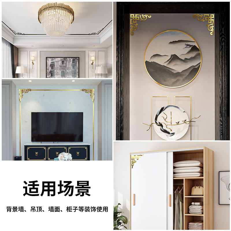 Stainless Steel Corner Flower Decoration Self-Glued Diagonal Flowers East Yang Wood Carved Chinese Ceiling Titanium Gold Bar Hollowed-out Decoration-Taobao