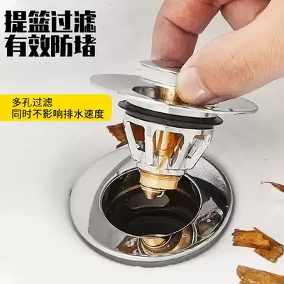 Wash basin hand pool leak plug wash basin water drain tube bounce core press type stainless steel flip plate accessories