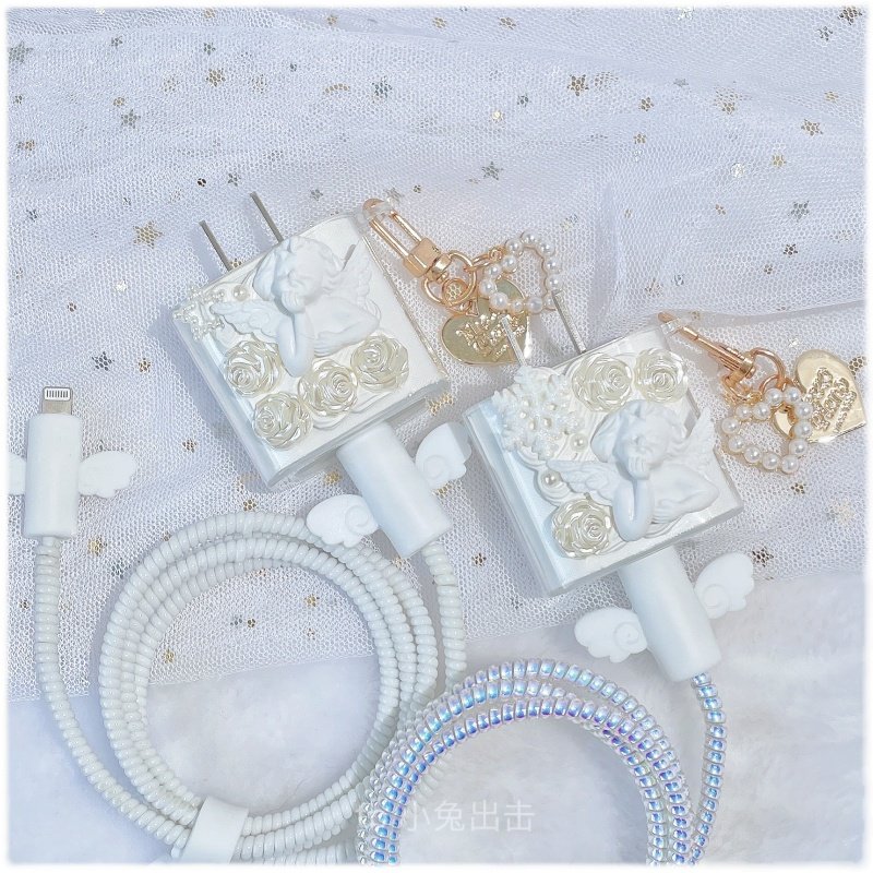 Snowflake Angel Charger Transparent Sleeve Radium White Snowflake Angel Transparent Cover Data Line Protection Pure White Snowflake Angel Transparent Cover Data Line Protection Radium White Snowflake Angel Transparent Cover Data Line Protect Pure White Snowflake Flowers