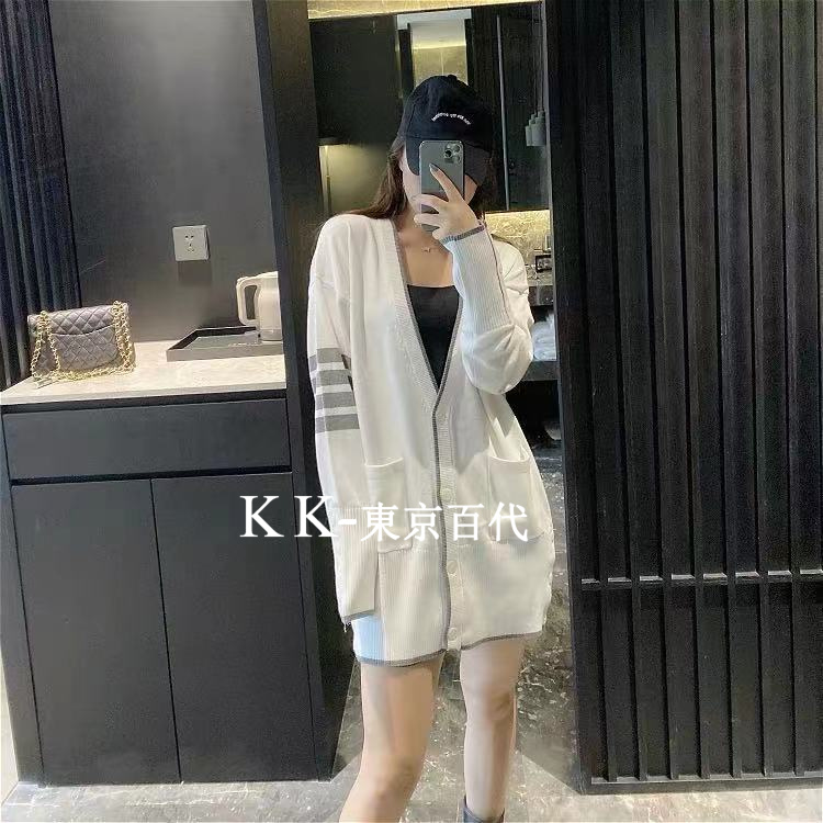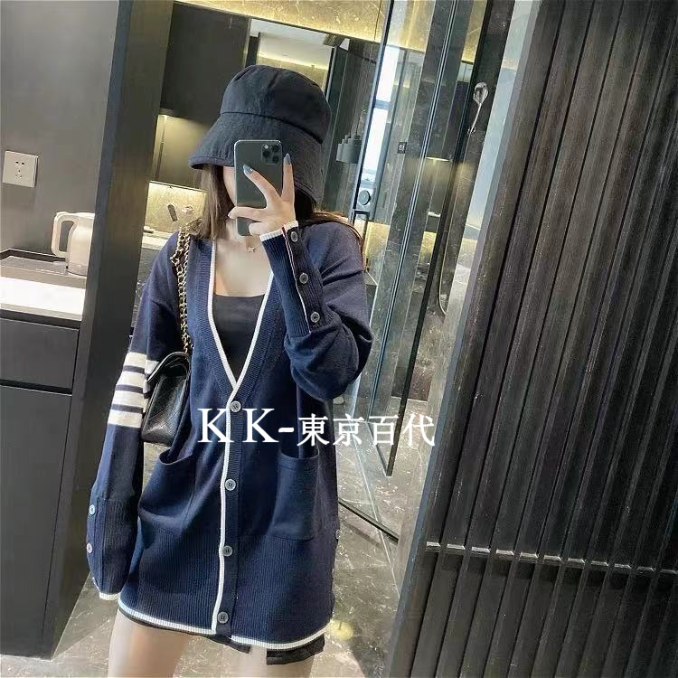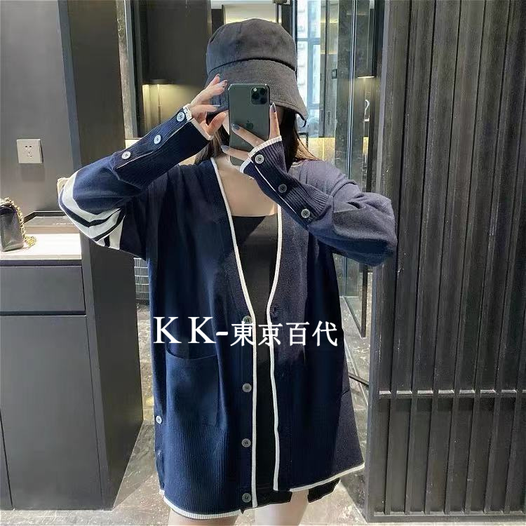 Thom Browne cardigan 21 Autumn and winter TB four-pole men's and women's casual loose wool knitted cardigan jacket