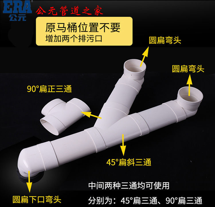 AD PVC toilet displacement toilet flat tube accessories flat corner three - way flat - corners with direct 110 flat joints