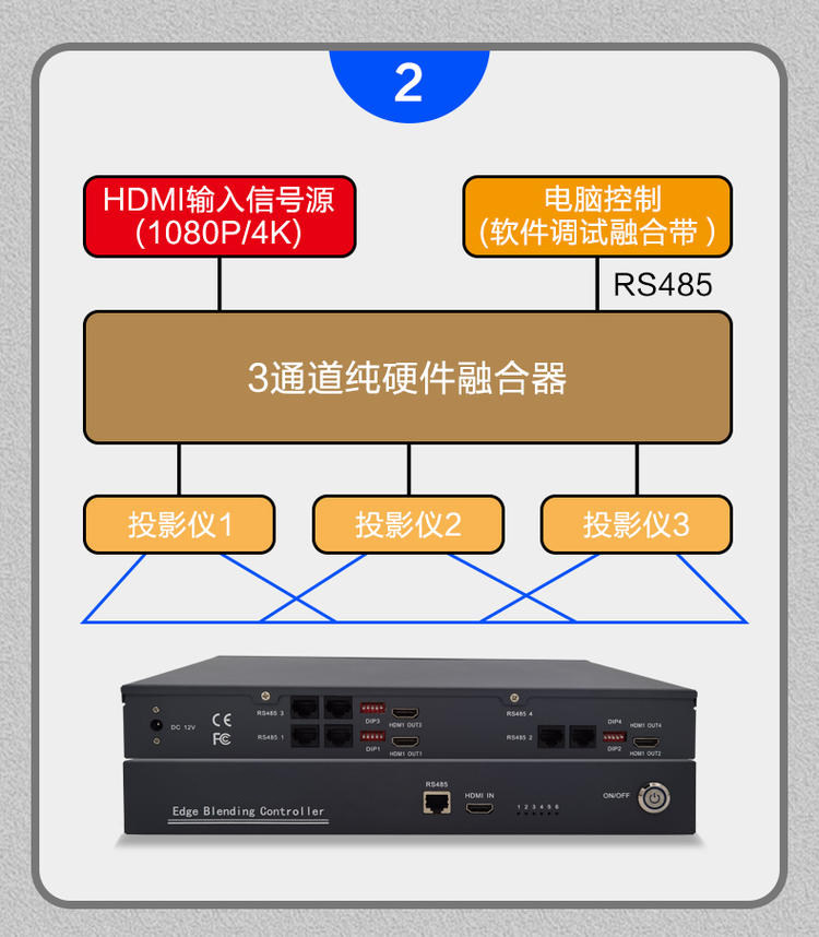 2-channel projector hardware fusion splicing edge fusion 1-in 2-out dual-pass projector channel fusion