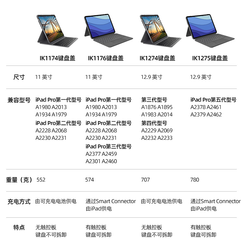 (Official flagship store) Roskill ik1174 keyboard cover suitable for Apple 11 12 9 inch IPAD PRO Touch adjustable backlight protective sleeves ik1275 ik12