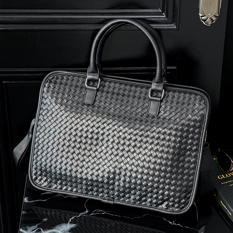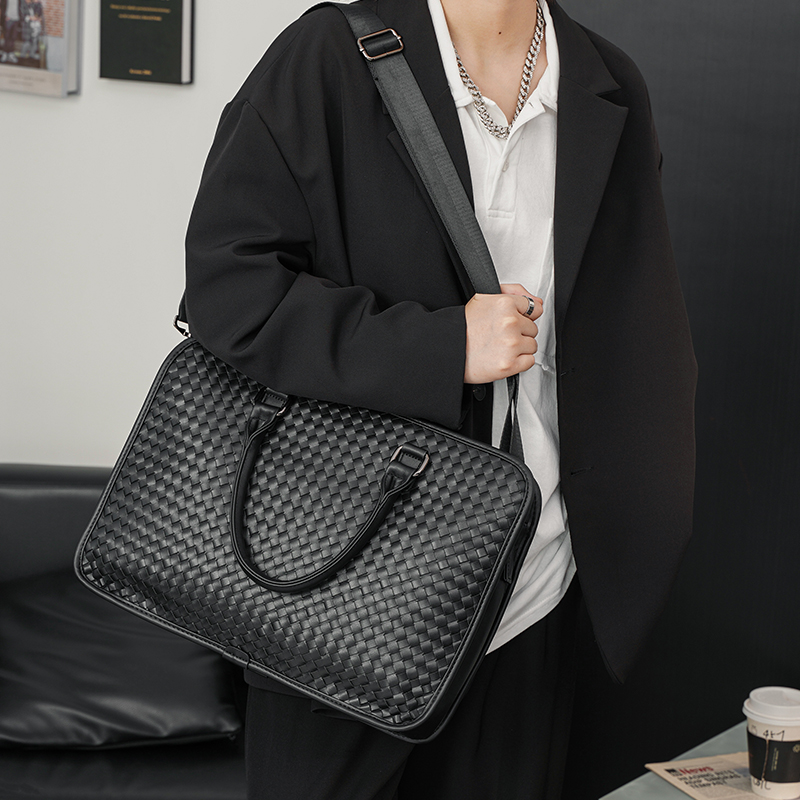 Hand Woven Handbag Business Briefcase Han Edition Men's Bag Fashion Cross Square Shaped Single Shoulder Inclined Satchel Bag Computer Bag
