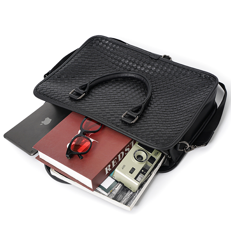 Black woven briefcase in the form of a