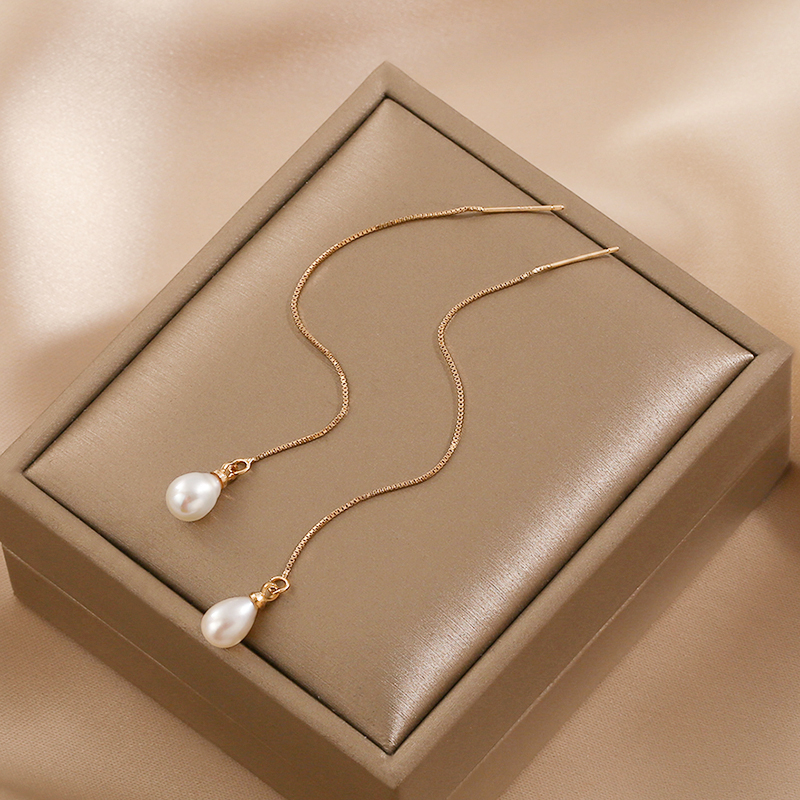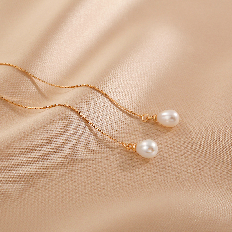 Natural Freshwater Pearl Earline Female Summer Long Version Temperament 100 Hitch 925 Pure Silver Superior Ear Accessories 2021 New