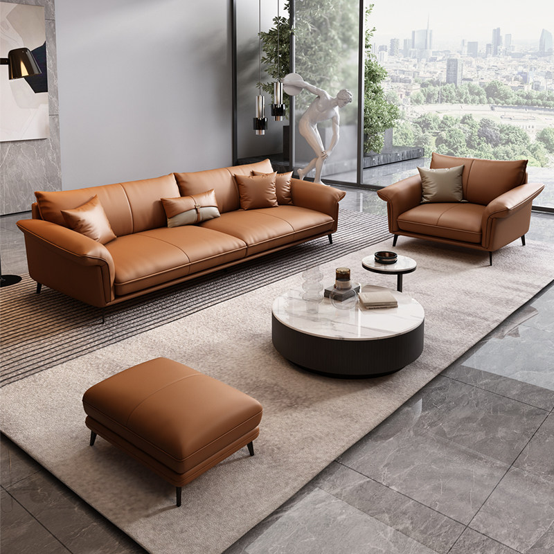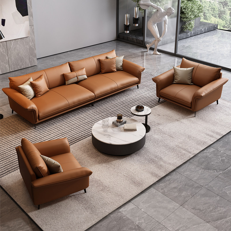 Italian Genuine Leather Boss Office Sofa Tea Table Combination Suit Brief Modern Business guests to receive trio
