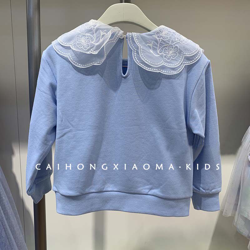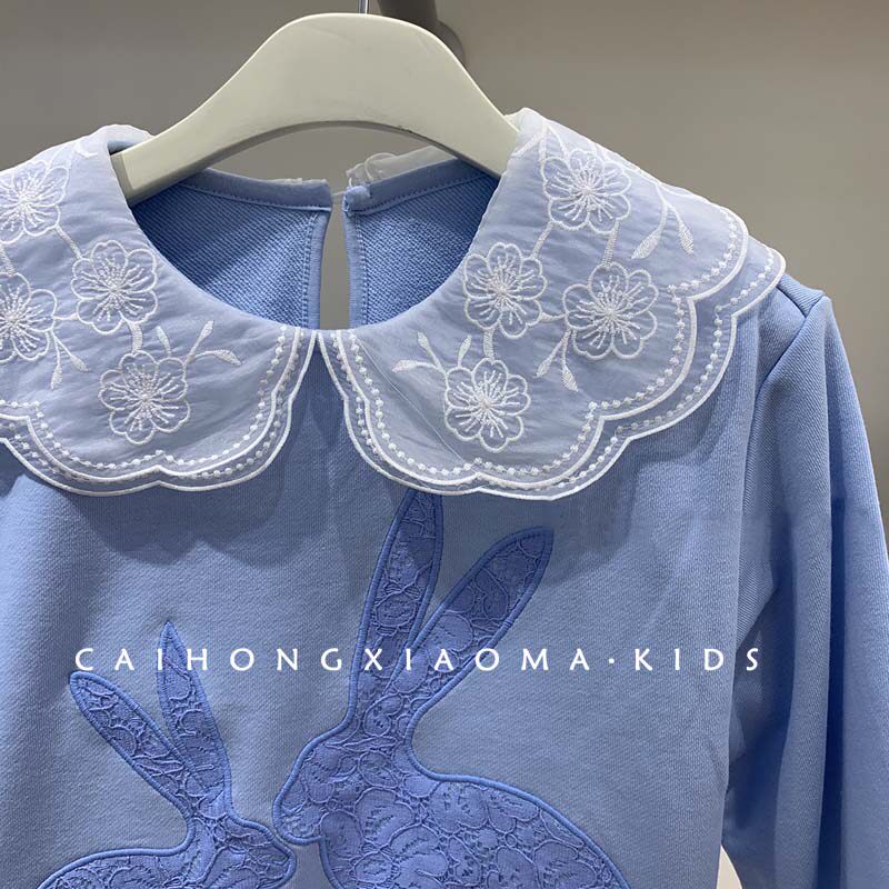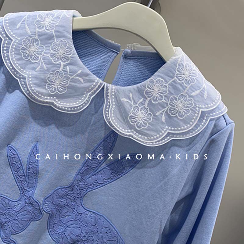 Korean version of children's clothing 2022 girl's clothing spring autumn little girl foreign air relaxed long sleeve round collar embroidered collar shirt tide