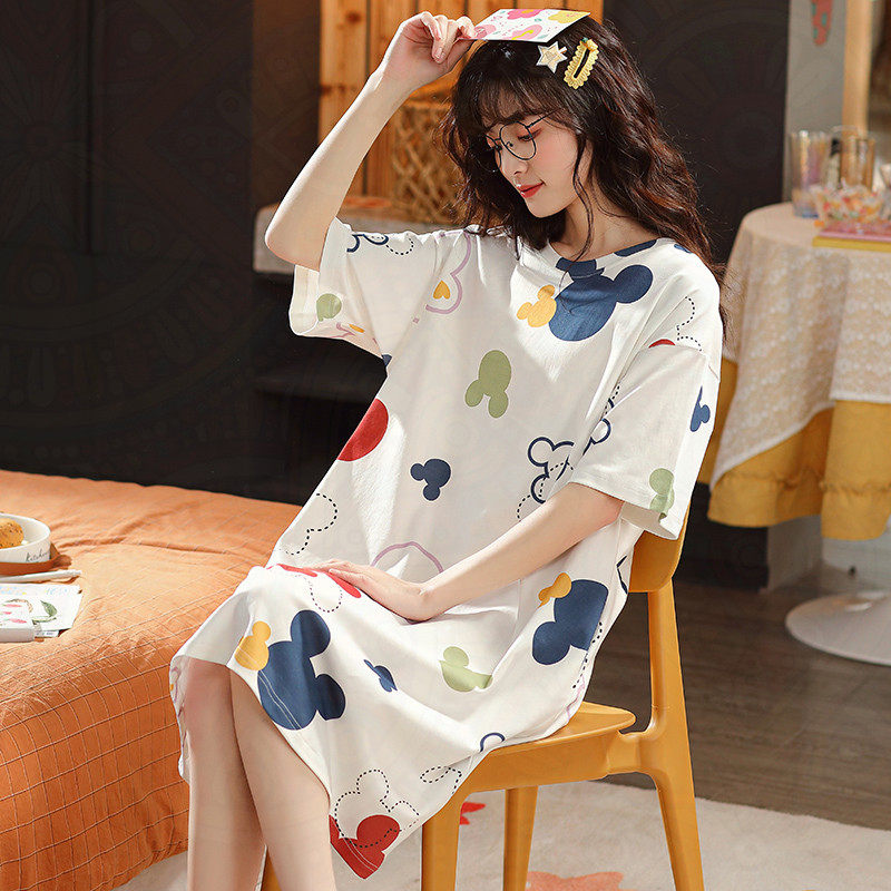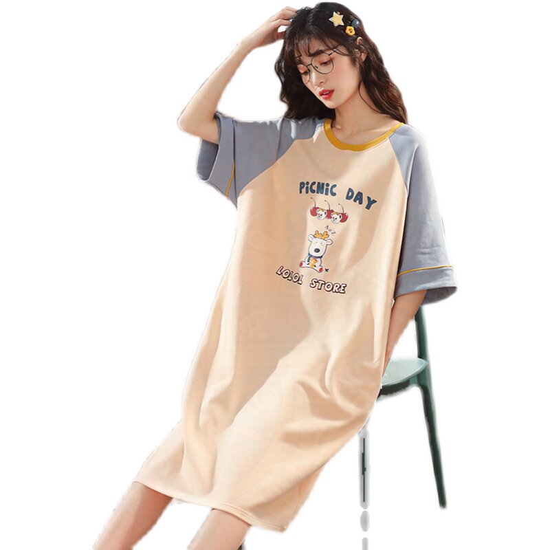 Pure cotton sleeping dress girl 2023 new summer sleeve short sleeve loose student girl pajamas women's home dress