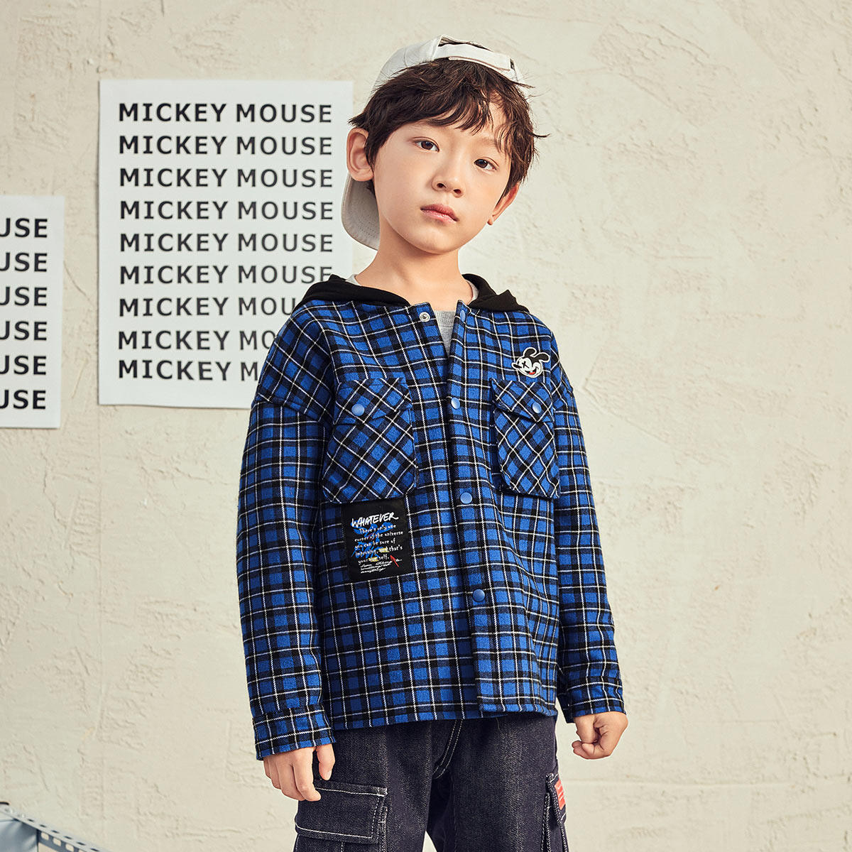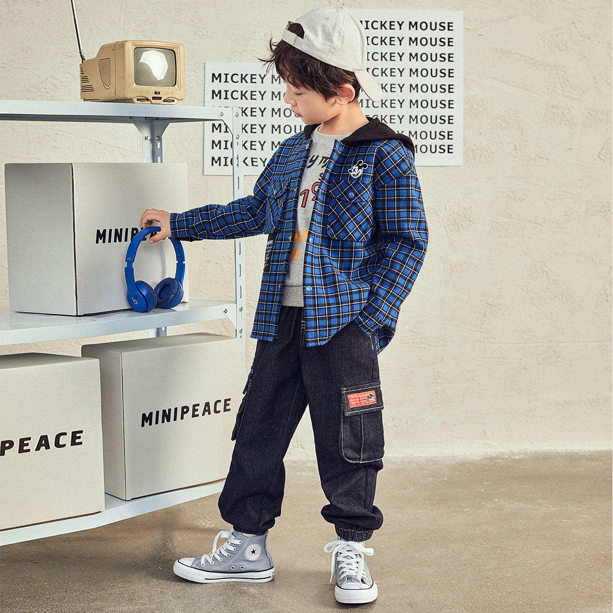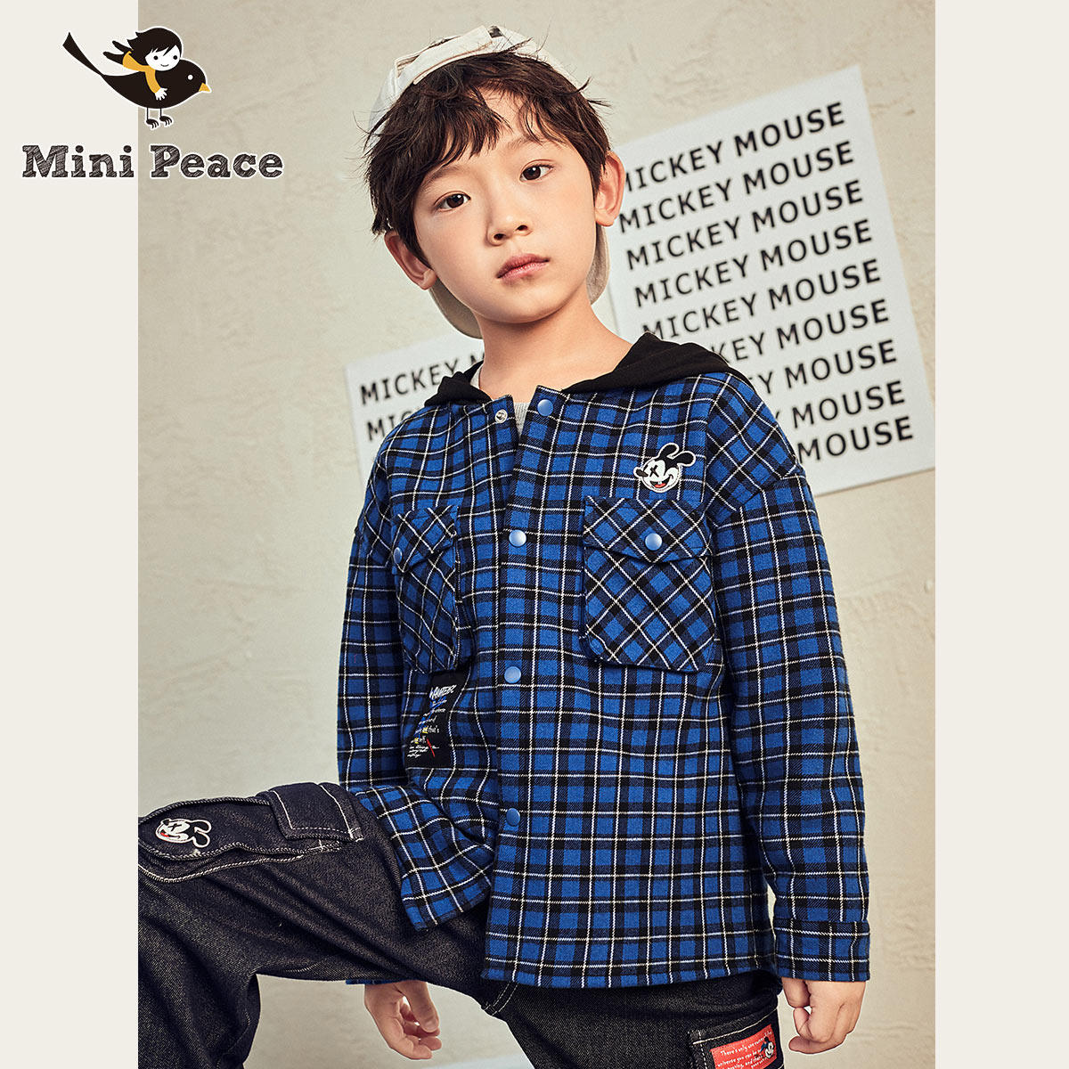 minipeace peace bird children's clothing children's shirt blue plaid boy's shirt 21 autumn new hooded jacket