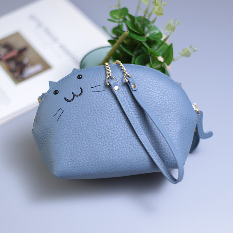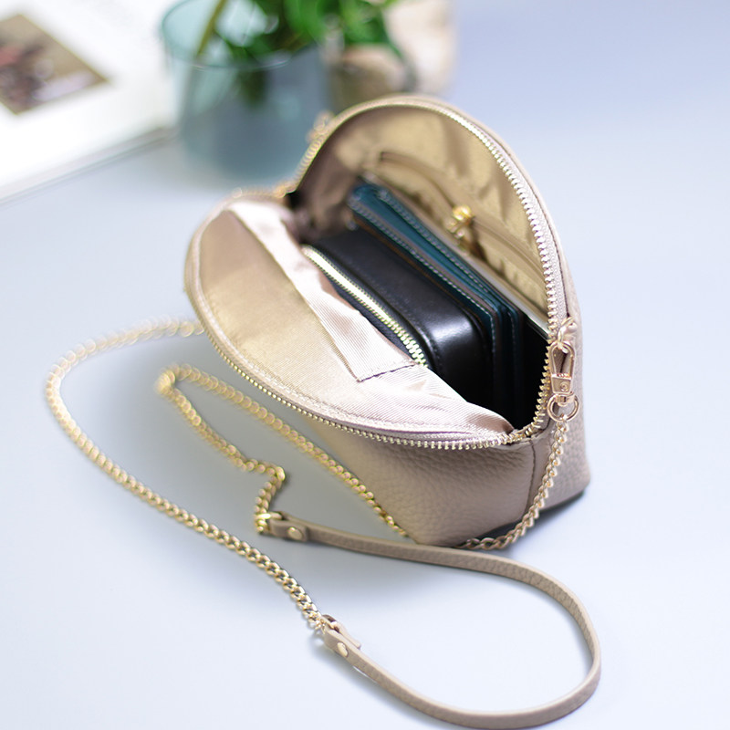 2021 Japan-ROK new headlining cow leather creative skew cross single shoulder chain bag small crowding temperament New wave female bag mobile phone bag