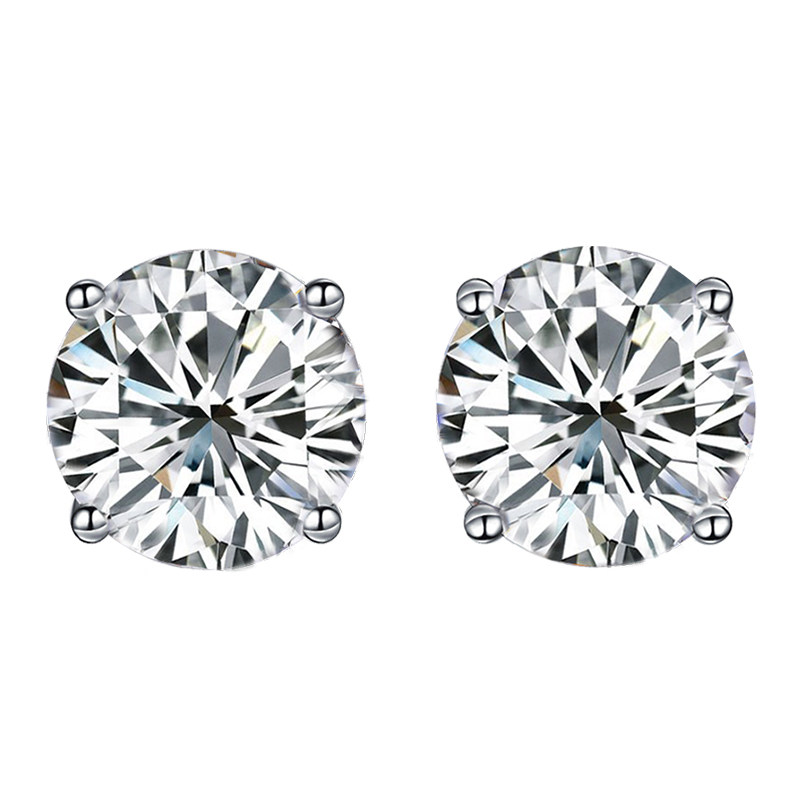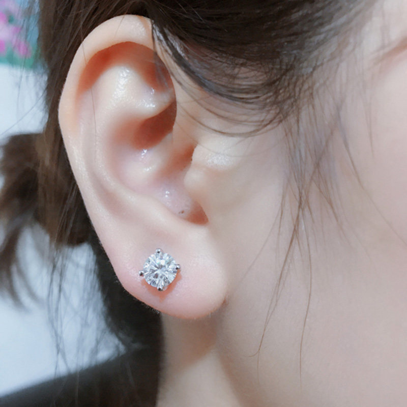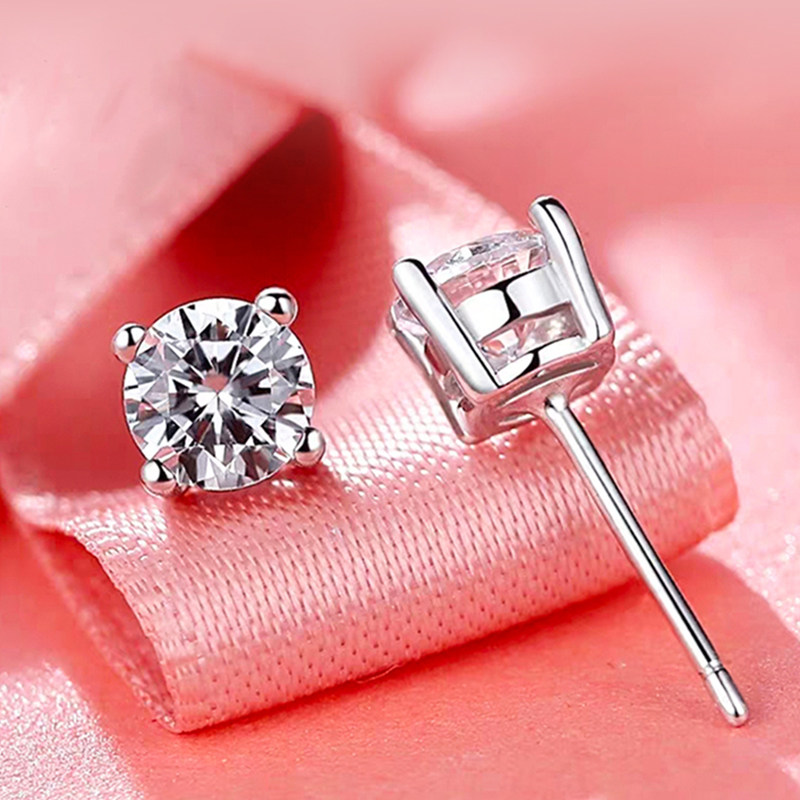 Chow Tai Fook PT950 platinum diamond stud earrings women's four-claw white gold 1 carat real diamond small earrings gift