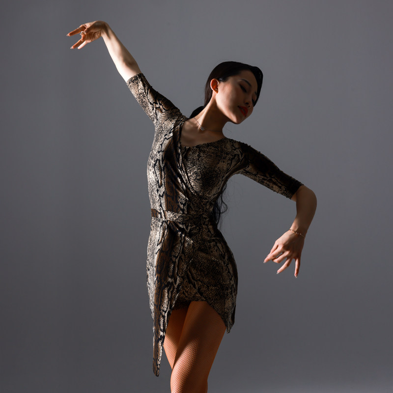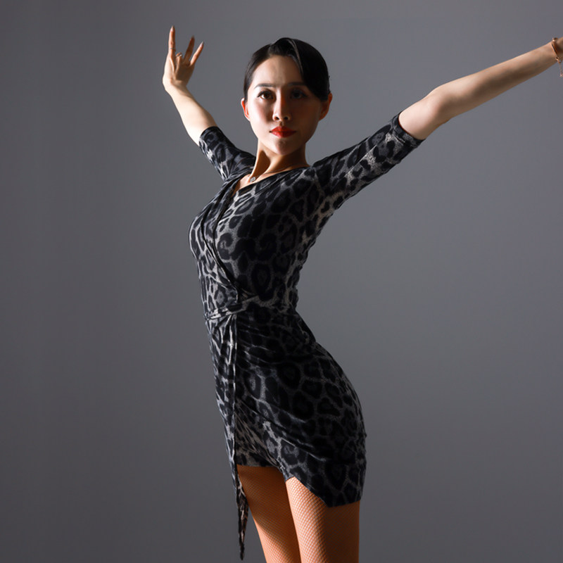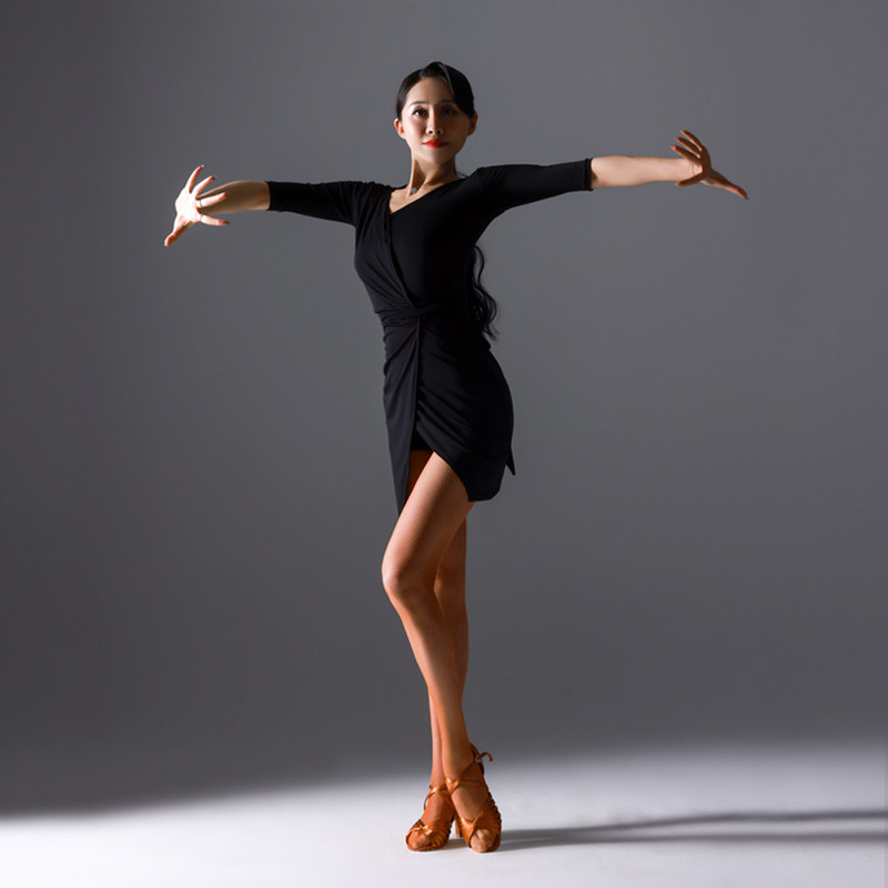 Connie's new Latin dance adult Morden Dance rehearsal for a V-collar performance with irregular half-body dress