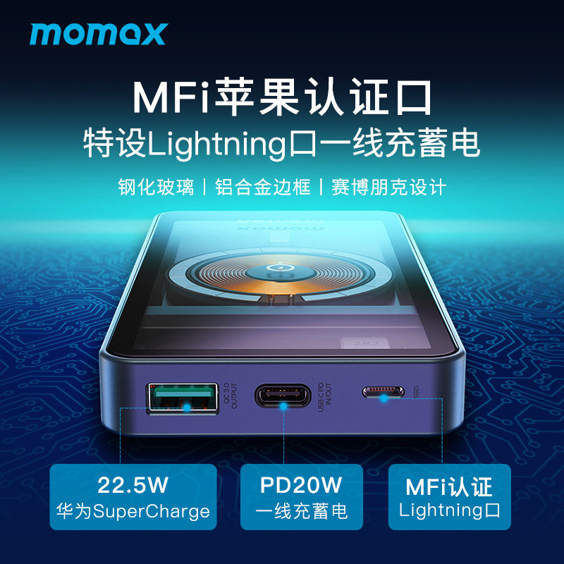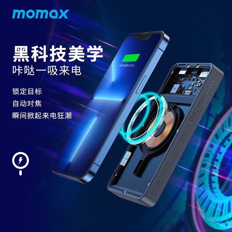 MOMAX Morimi transparent suction mobile charging applicable Apple MFI certified PD fast charging ten thousand 10000 mAh iPhone13 special MagSafe action power supply 12p