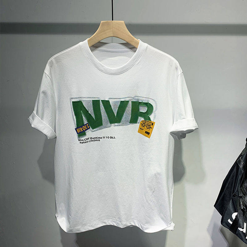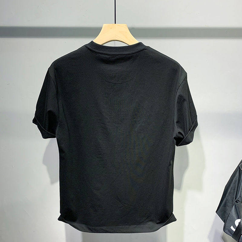 2022 summer new trendy brand t-shirt men's round neck short-sleeved American casual trend print stitching T-shirt