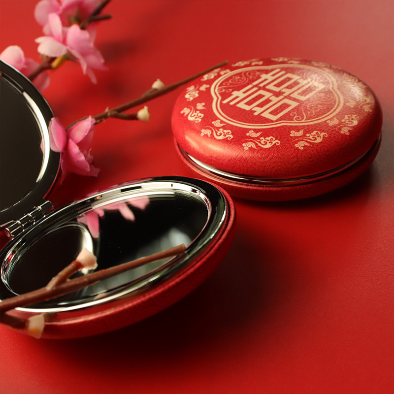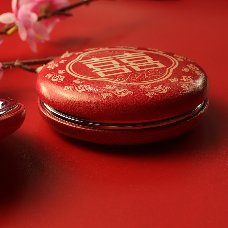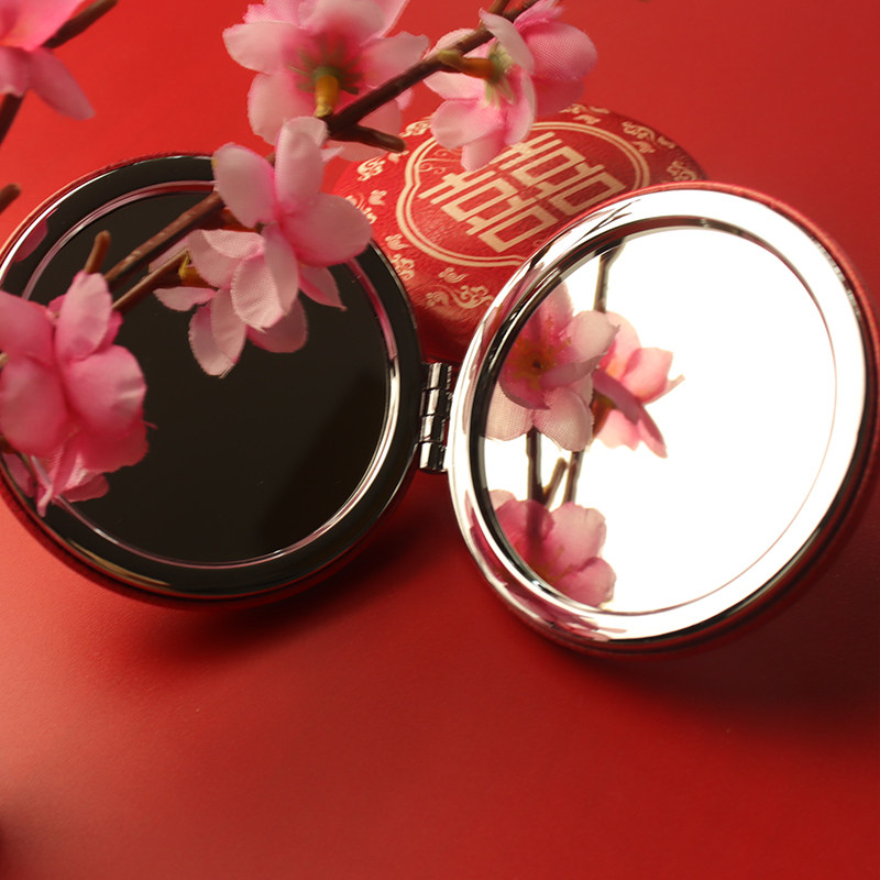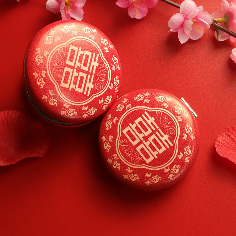 Huiqing Public Red Happy Mirror Wedding Supplies Female Party Dowry Couple of Married Items Bride with Wedding Makeup Mirror