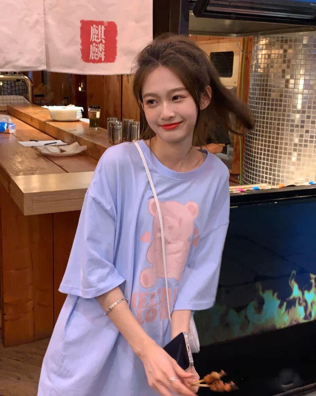 chic harbor style short sleeve T-shirt female summer loose Korean version of ins tide Bear couple best friend suit fried street half sleeve shirt