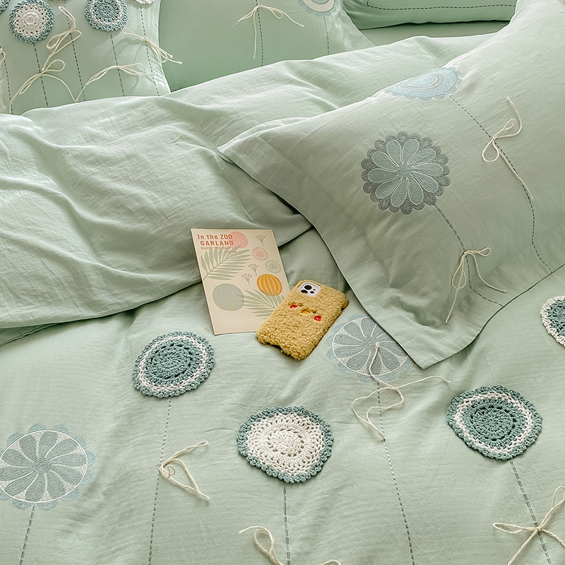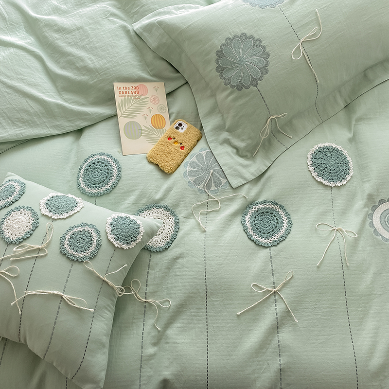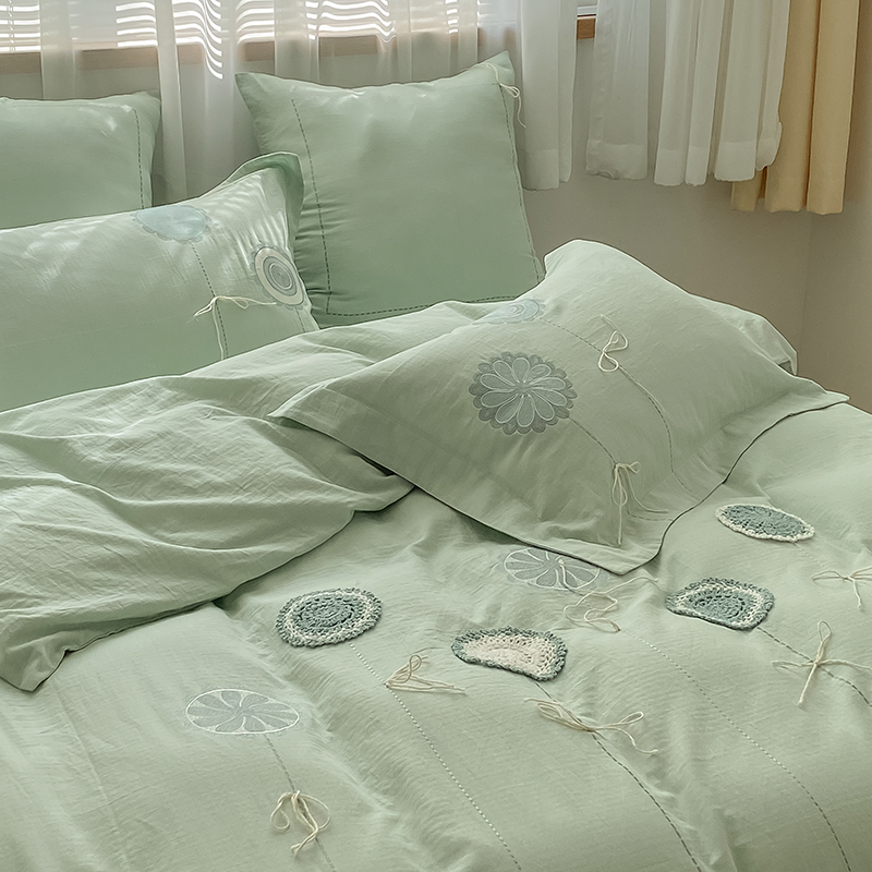 Fan Residence Summer New Small Fresh Double Layer Yarn Home Pure Cotton Sheet Quilt Cover Embroidery Full Cotton Bed Four Sets