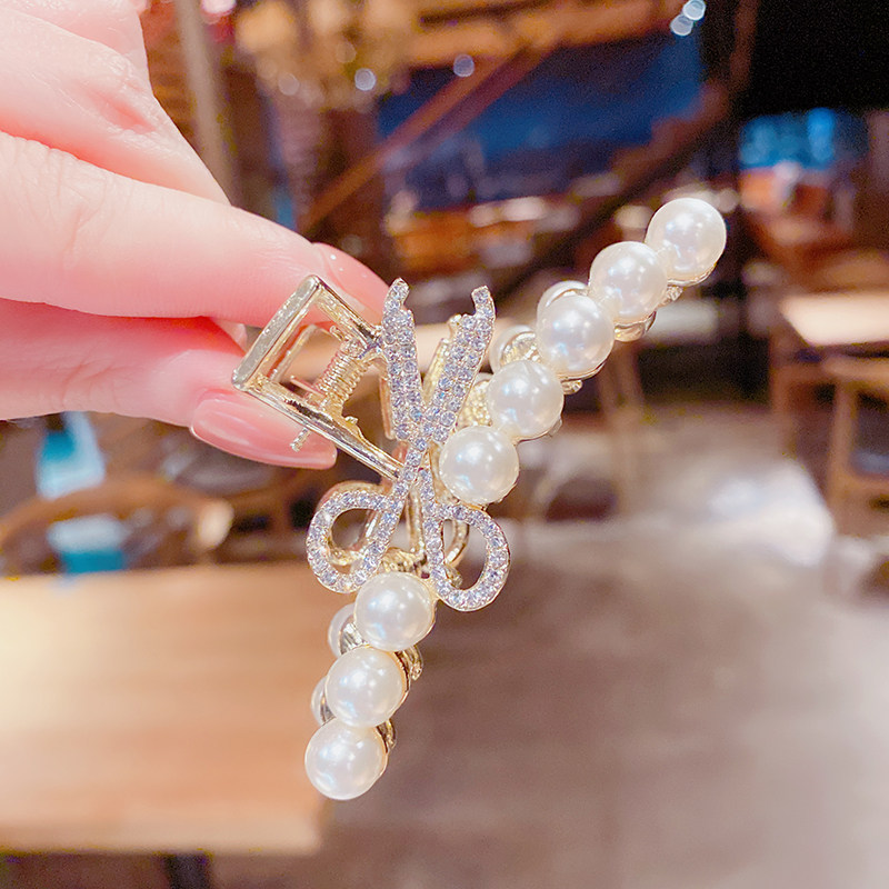 South Korea 2022 New Advanced Sensation Pearl Hair Clip Grip Clip Fashion Scissors Grip Hairpin Clip Web Red Back Brain Spoon Hair Accessories