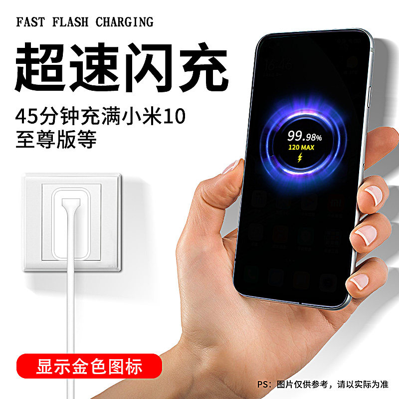 For Xiaomi 10 Junior Edition 120W Charger Nitride Flash Charge MDY-12-ed Extreme Speed Fast Charge Type-C10 Junior Memorial Black Shark 4 4pro Charging Head Seven