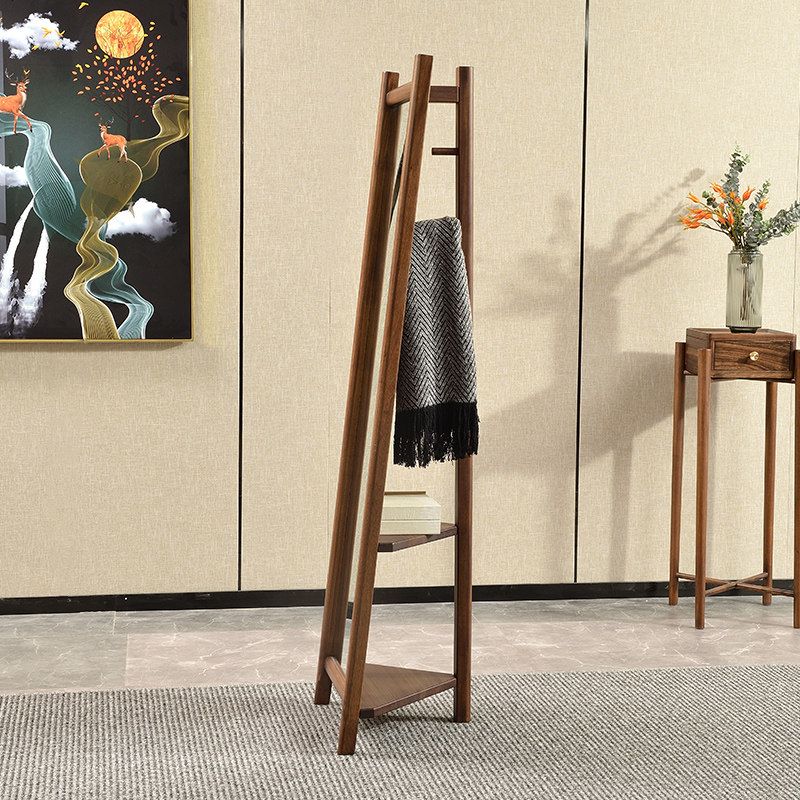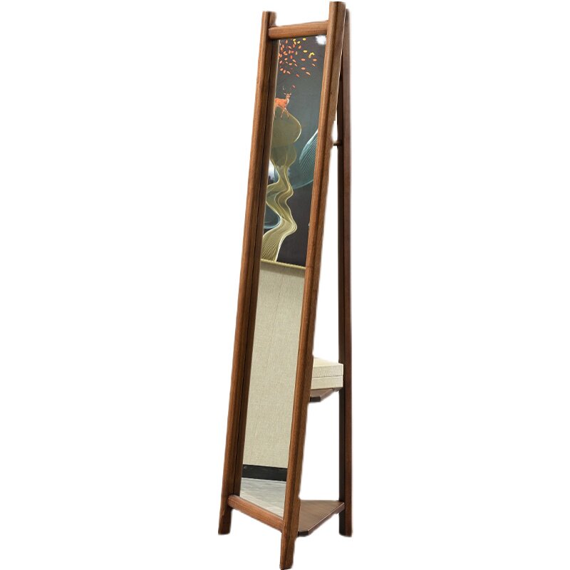 Simple modern bedroom full-length mirror Nordic solid wood floor-to-ceiling full-length mirror home full-length mirror black gold wood coat rack