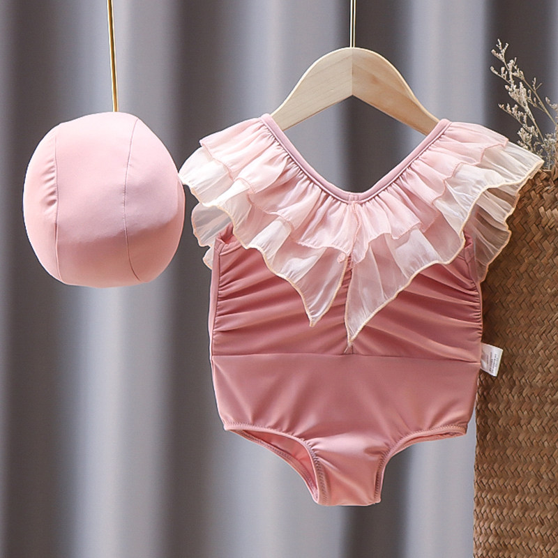 Swimsuit girl Xia Princess Xia Children's Children Even Swimming Clothes Cute Two-Year-Old Baby Swimsuit Netting Red 2022 Children