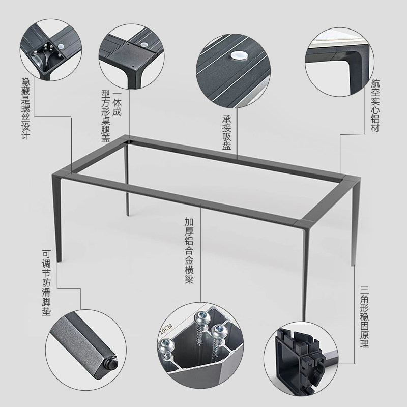Italian rectangular rock slab round dining table high-end tea table conference table aluminum alloy table frame light luxury small apartment home