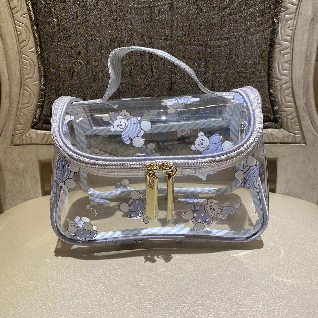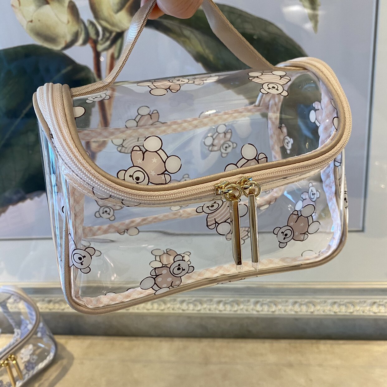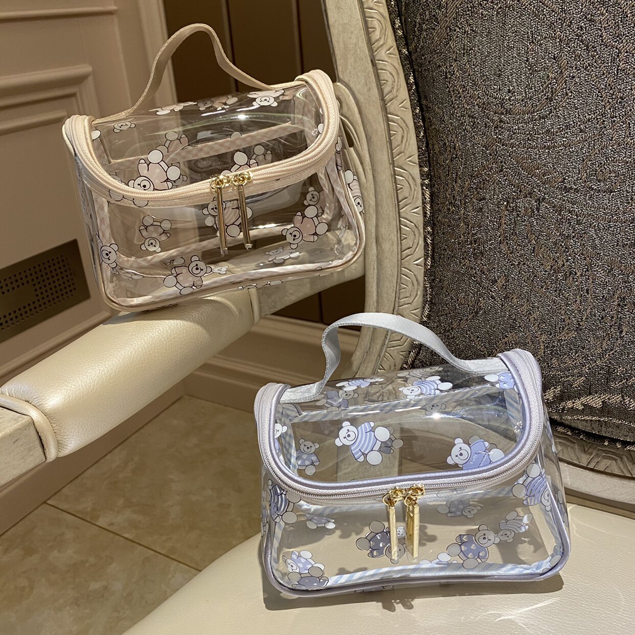 PETIT TROUVER Summer Versatile Transparent Cosmetic Bag Portable Printed Bear Jelly Waterproof Toiletry Bag