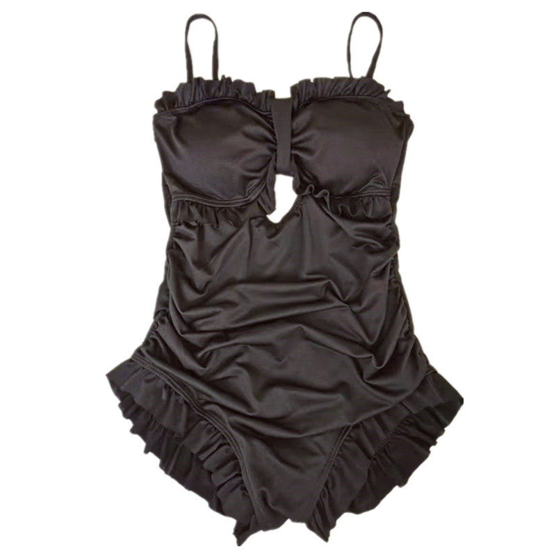Black black single bathing suit with a black color