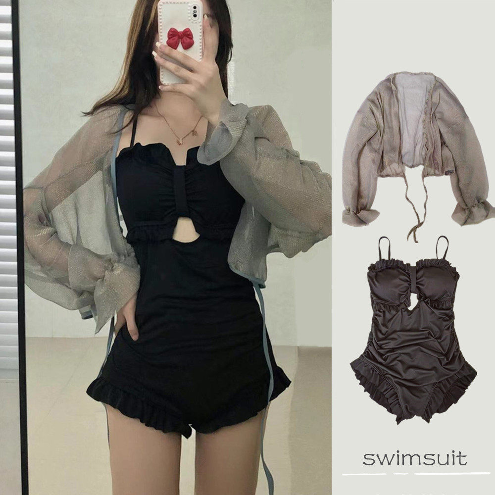 Swimsuit women's summer ocean dress harness minimalist sunscreen Summer swimwear cover arm with chest cushion sweet and windy