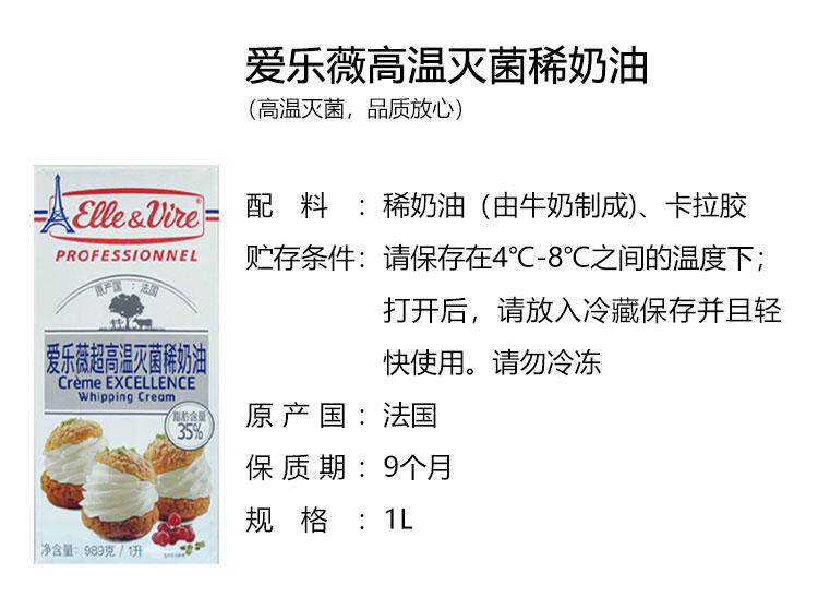 Iron tower light milk oil 1L* 3 bottled Philharmonia Vizoic ultra-high-temperature thin cream cake framed mousse milk cover