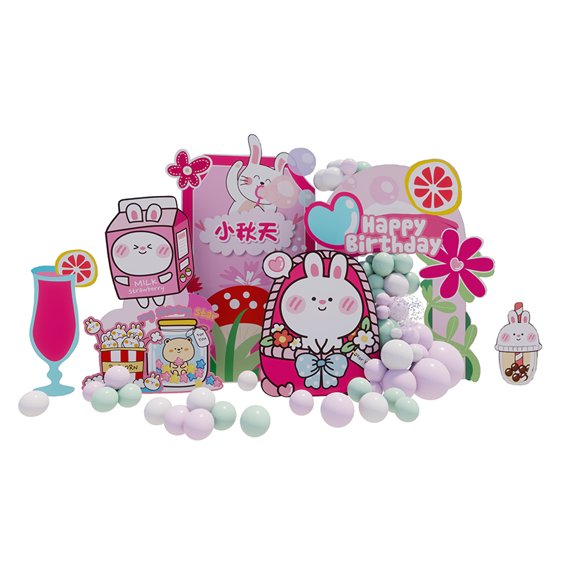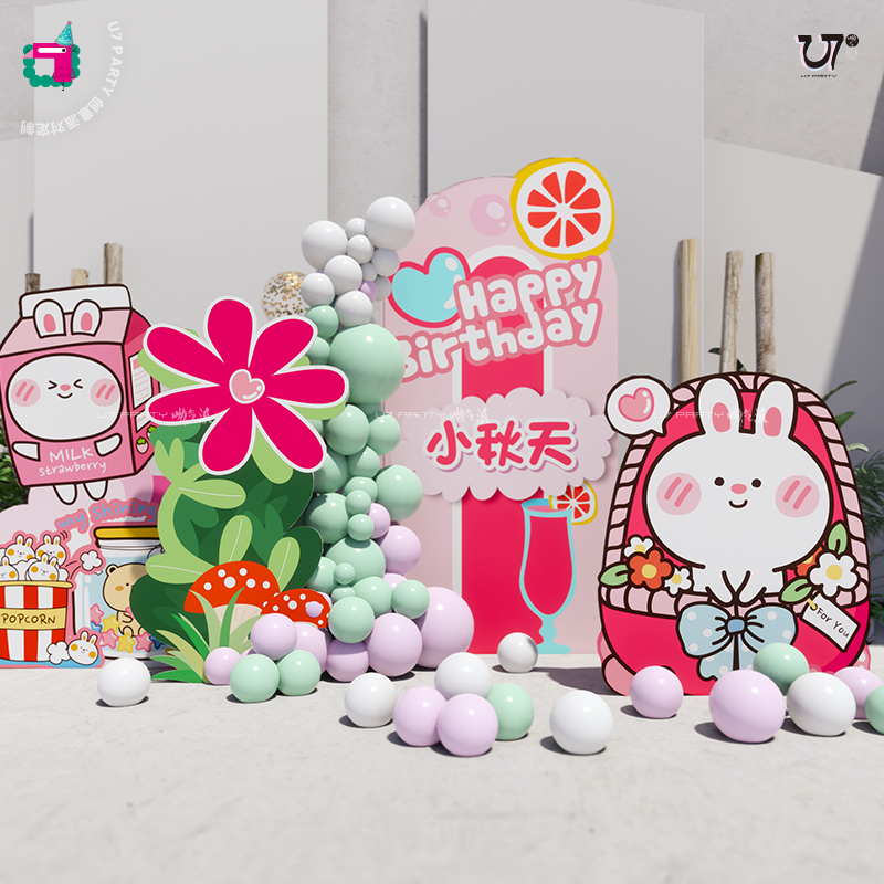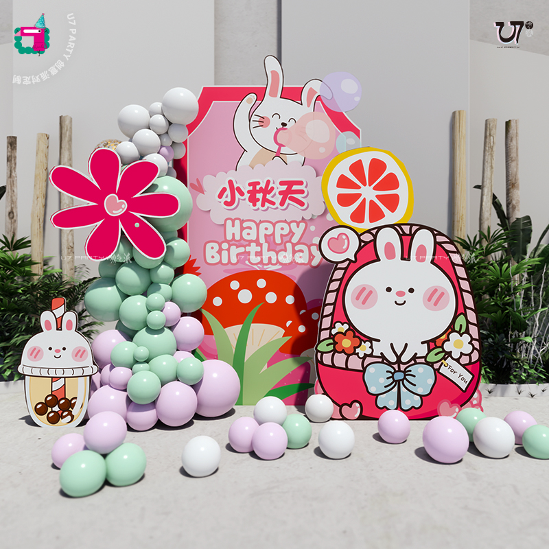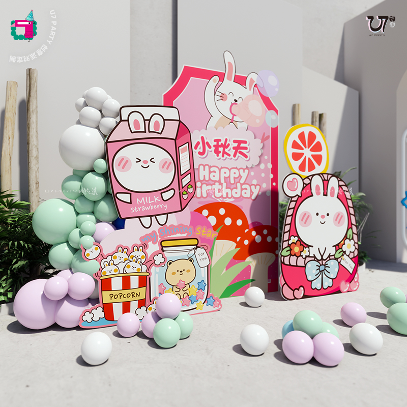 Sen small fresh rabbit theme girl treasure one-year-old hundred days full moon birthday children's balloon layout scene decoration KT board