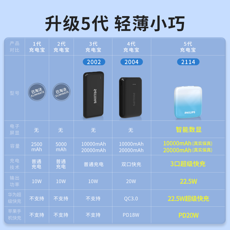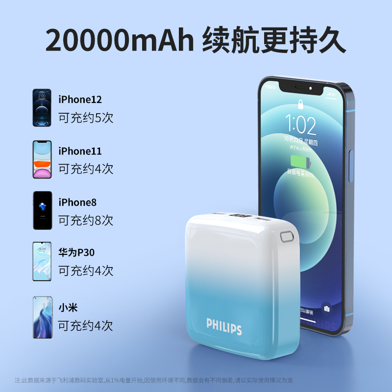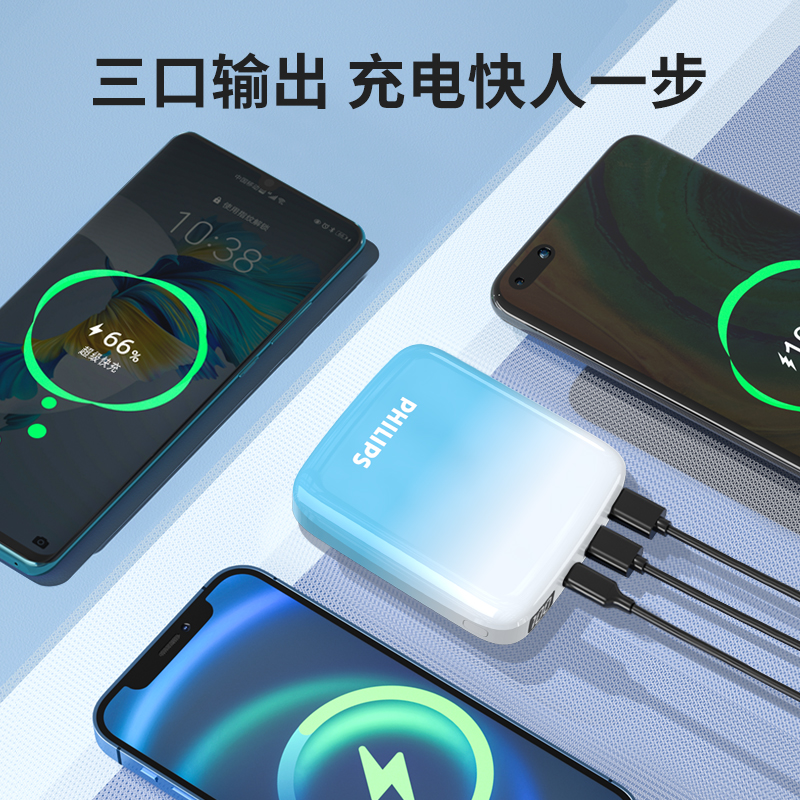 Philips Mini mobile charging ultra-thin small portable official flagship store to apply Huawei Apple 12 13 mobile phone fast charging 10000 mAh high-end light thin action power can get on the plane