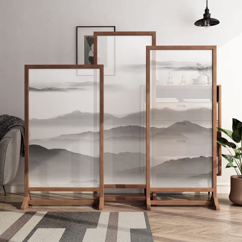 New Chinese-style screen partition living room fabric porch modern minimalist ink landscape bedroom solid wood mobile office