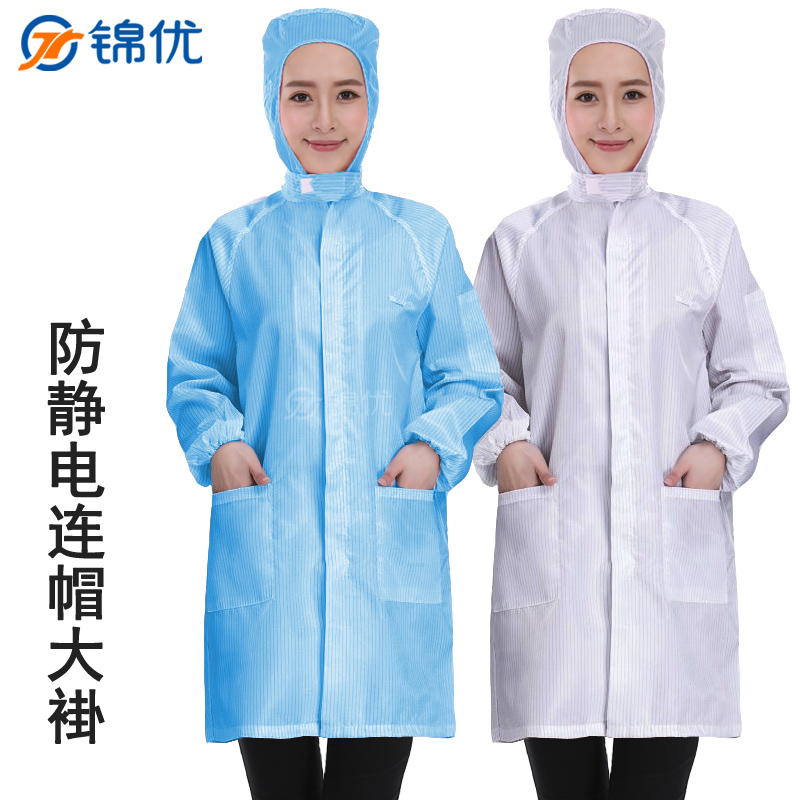 Anti - static coat hood Electric clothes Electronic factory dust - free clothes for men and women's workshop white blue dust - proof working clothes