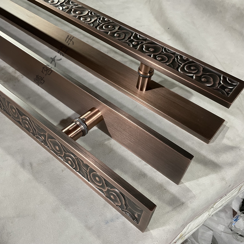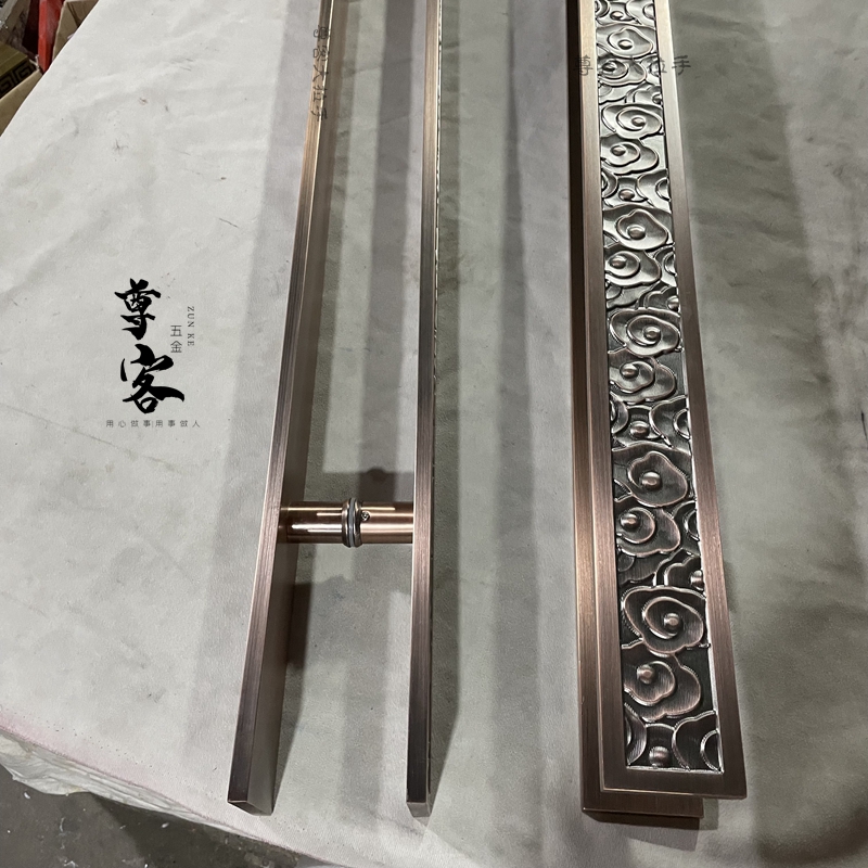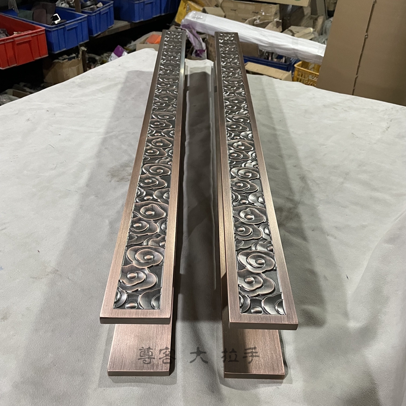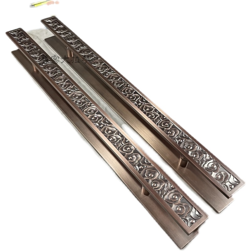 Chinese antique door handle bronze black double switch glass door wooden door handle long auspicious cloud carving handrail
