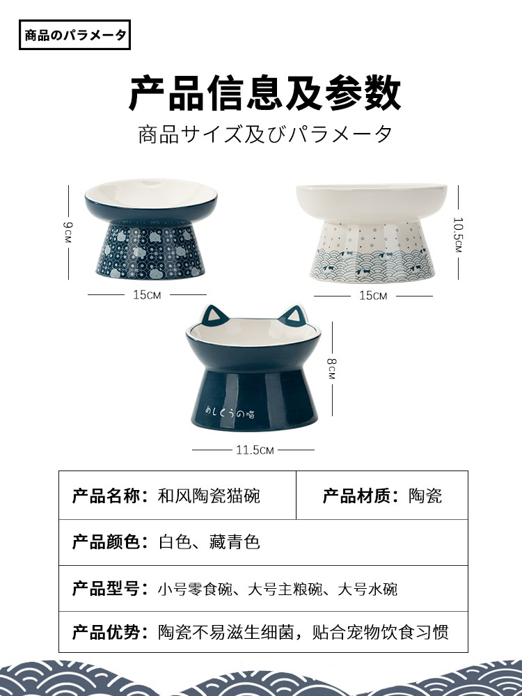 Cat bowl ceramic anti-overturning high-footed double bowl food bowl dog bowl cat drinking bowl protection cervical vertebra drinking water pet supplies