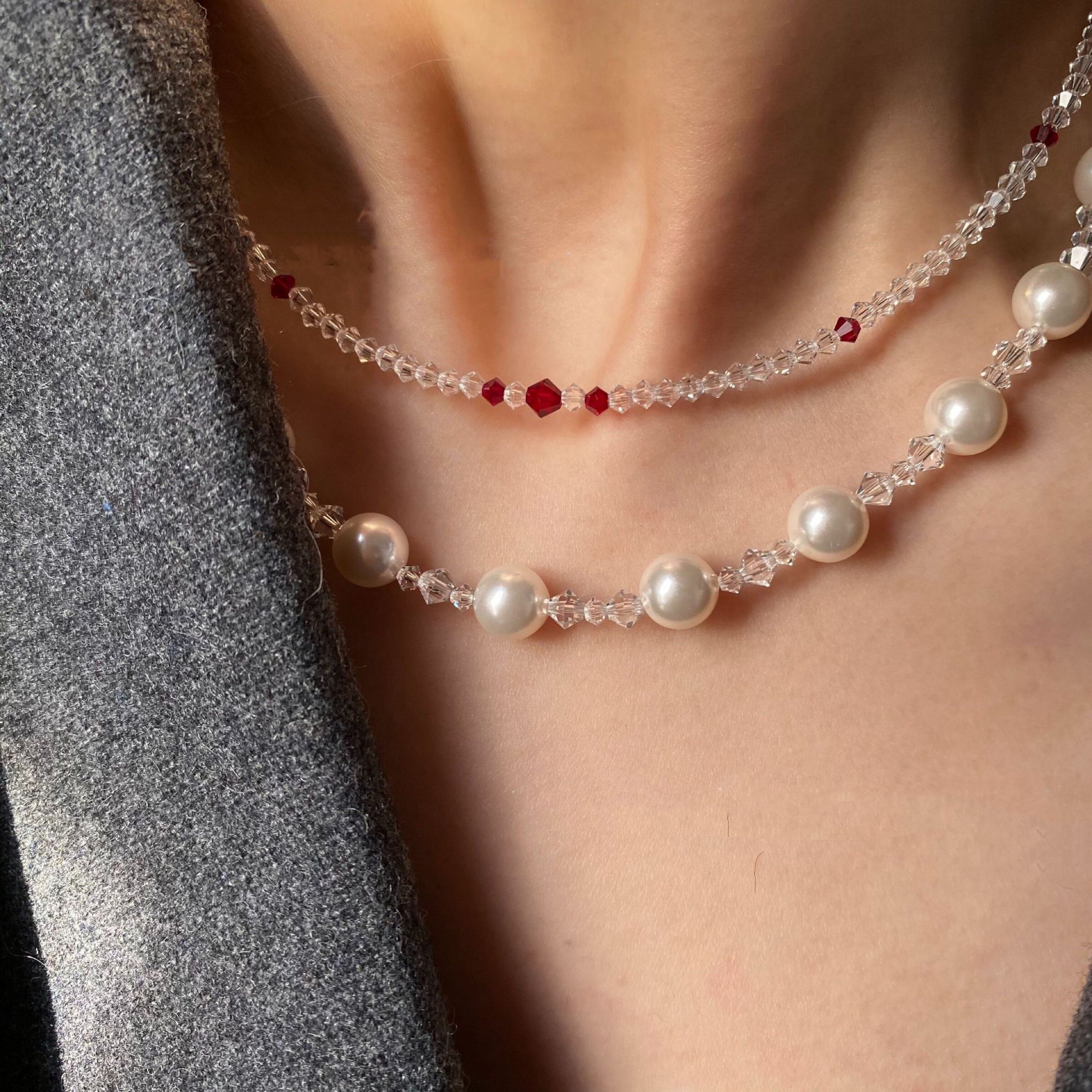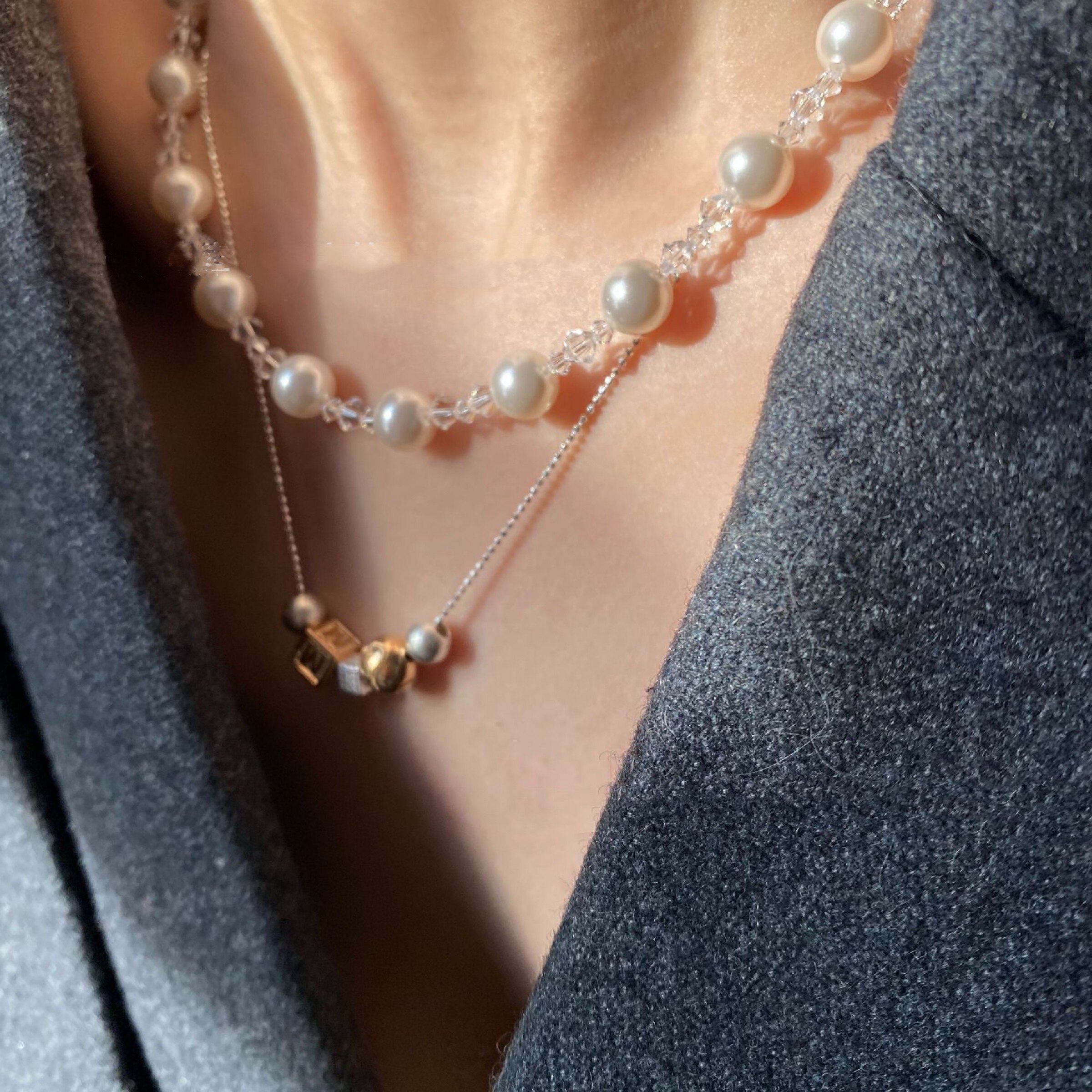 Temperament Sch Great Pearl Design Sensation Crystal Necklace Woman American 925 Pure Silver Lock Bone Chain 100 hitch Queen Fan