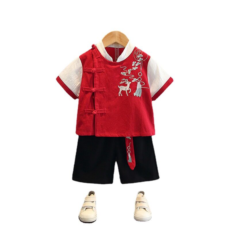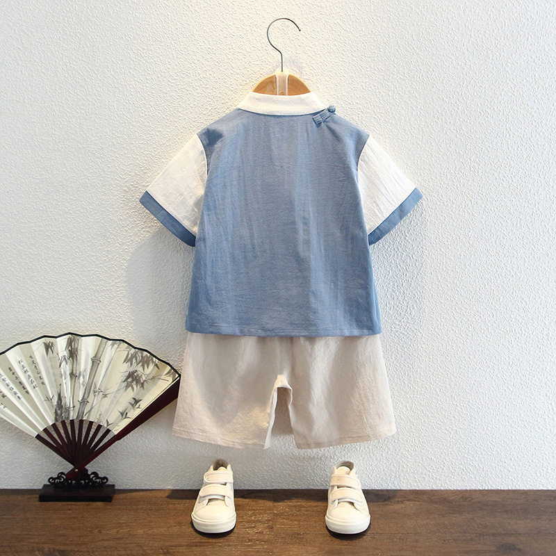 Hanfu boys summer short-sleeved Chinese style retro suit boy baby cotton summer costume two-piece children's Tang suit