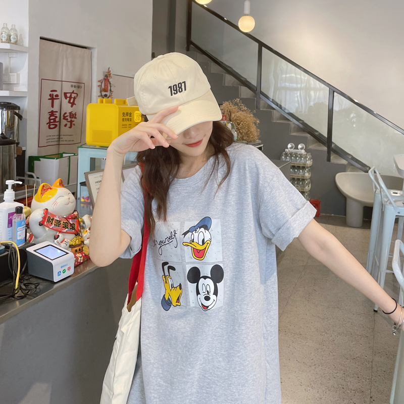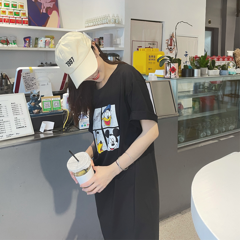 Sleeping Skirt Woman Summer Cute Pure Cotton Short Sleeves Mid long version of the new pyjamas 2021 New pyjamas can be worn outside the home dress
