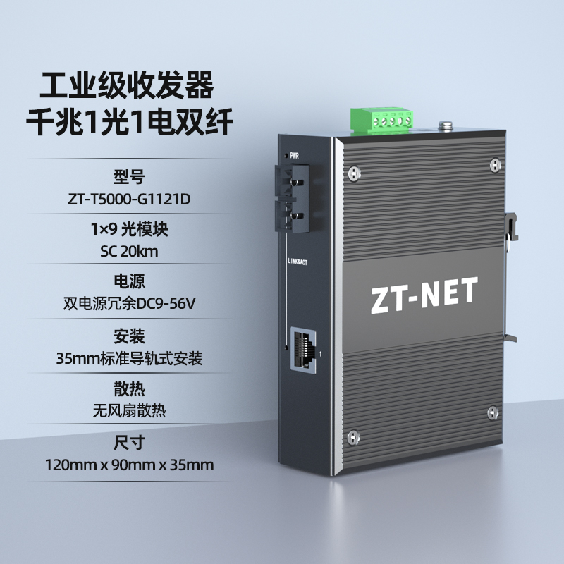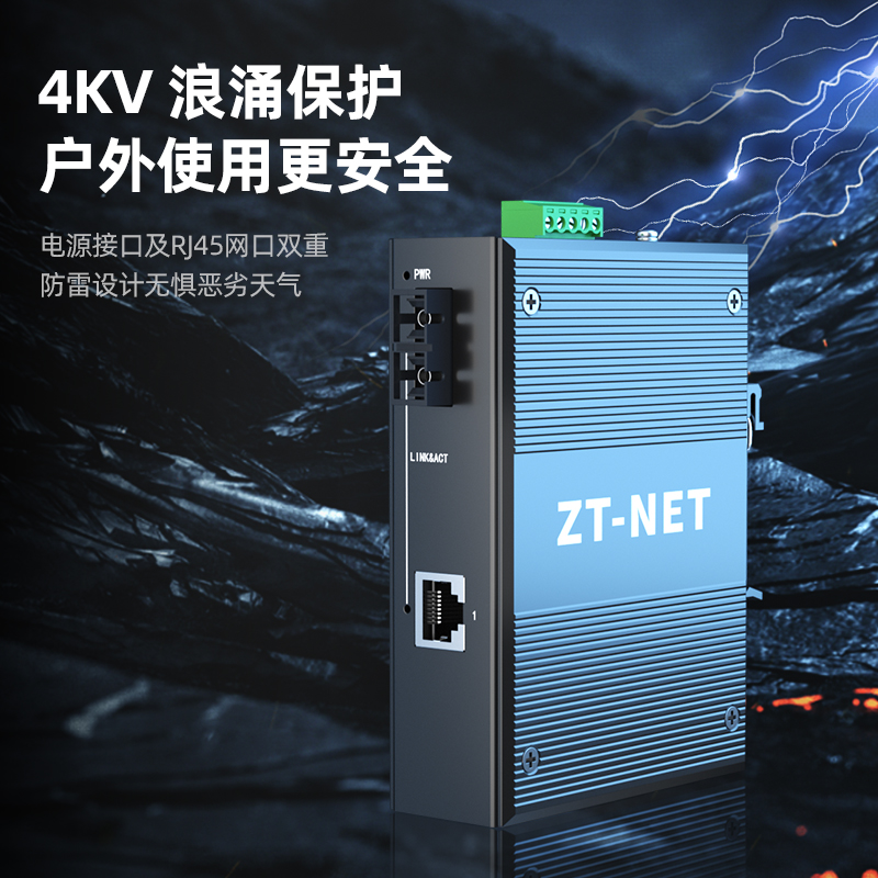 Medium-day communication (ZT-NET) Industrial grade fiber transceiver one thousand trillion single mode double fiber 1 light 1 2 4 electric conversion industrial control automation monitoring security enterprise Ethernet card rail type lightning protection-T