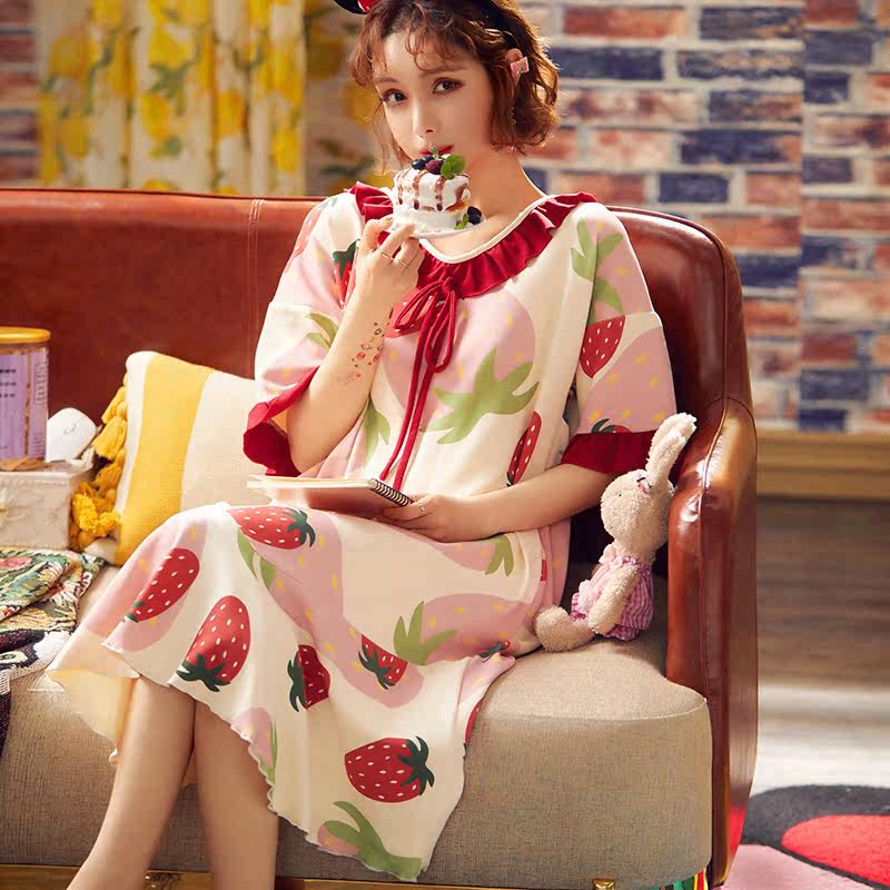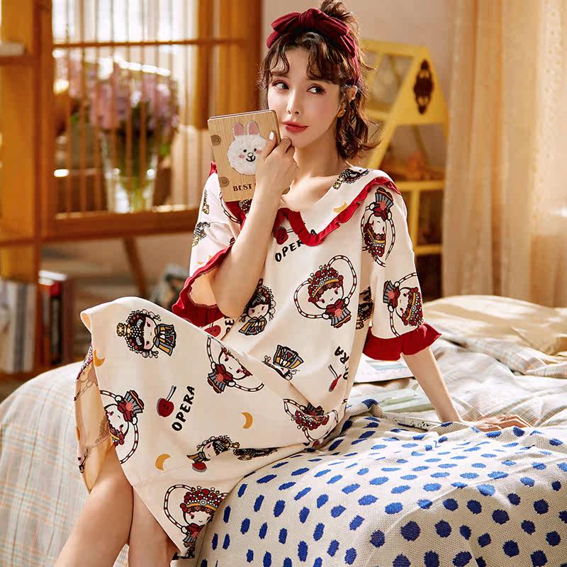 Cotton nightdress women's summer thin short-sleeved loose maternity dress pajamas 2022 new summer home wear