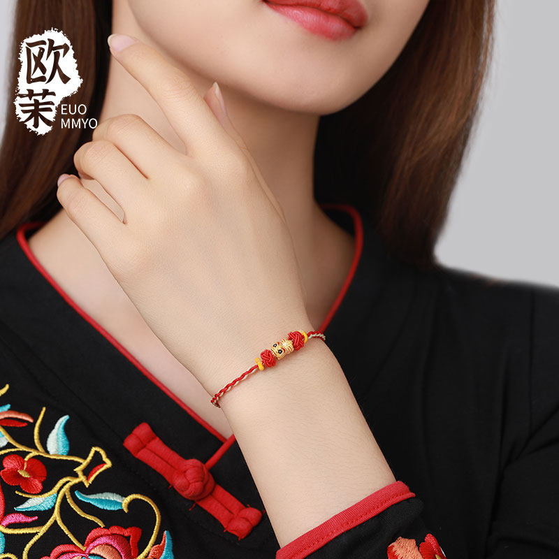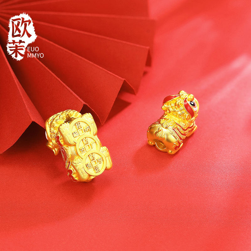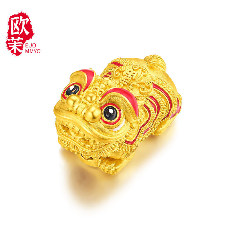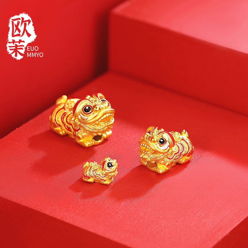 Gold Lucky Wake-Up Lion Transfer Beads Pure Gold 999 Enamel Lucky Lion Dance Auspicious Beast Happy Lion Passepartout Bracelet