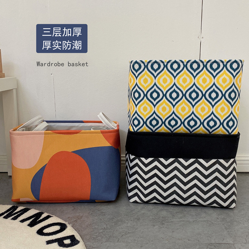 Light luxury wardrobe storage basket fabric three-layer thickened washable clothes finishing box large wardrobe clothes storage bag