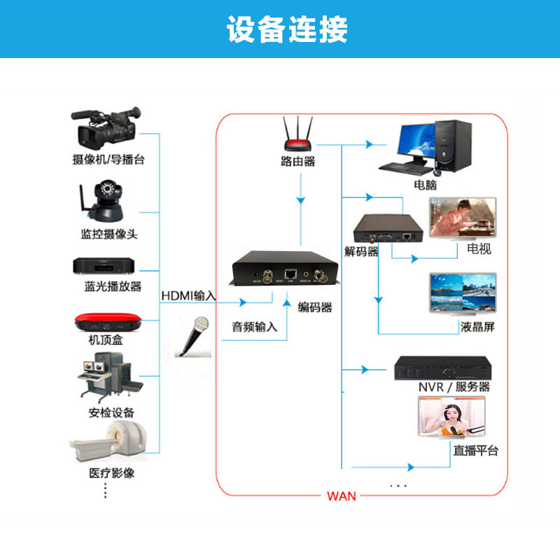 SDI encoder H 265 H 264 to RJ45 support RTSP FLV RTMP multicast video conference monitoring