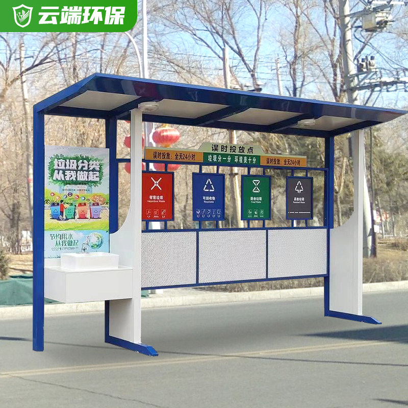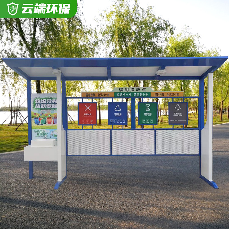 Custom Trash Sorting Kiosk Outdoor Community Street Sanitation Trash Sorting Collection Kiosk Stainless Steel Garbage Recycling Station