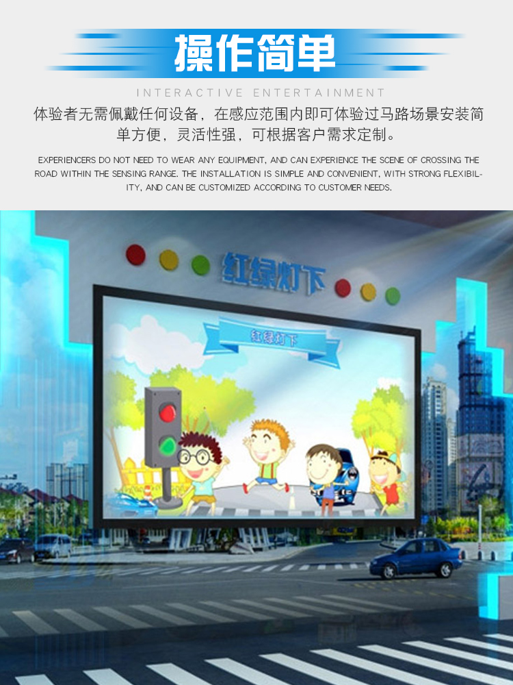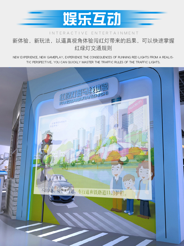Traffic simulation traffic light software road safety experience somatosensory 3D signal light crossing the road interactive education system